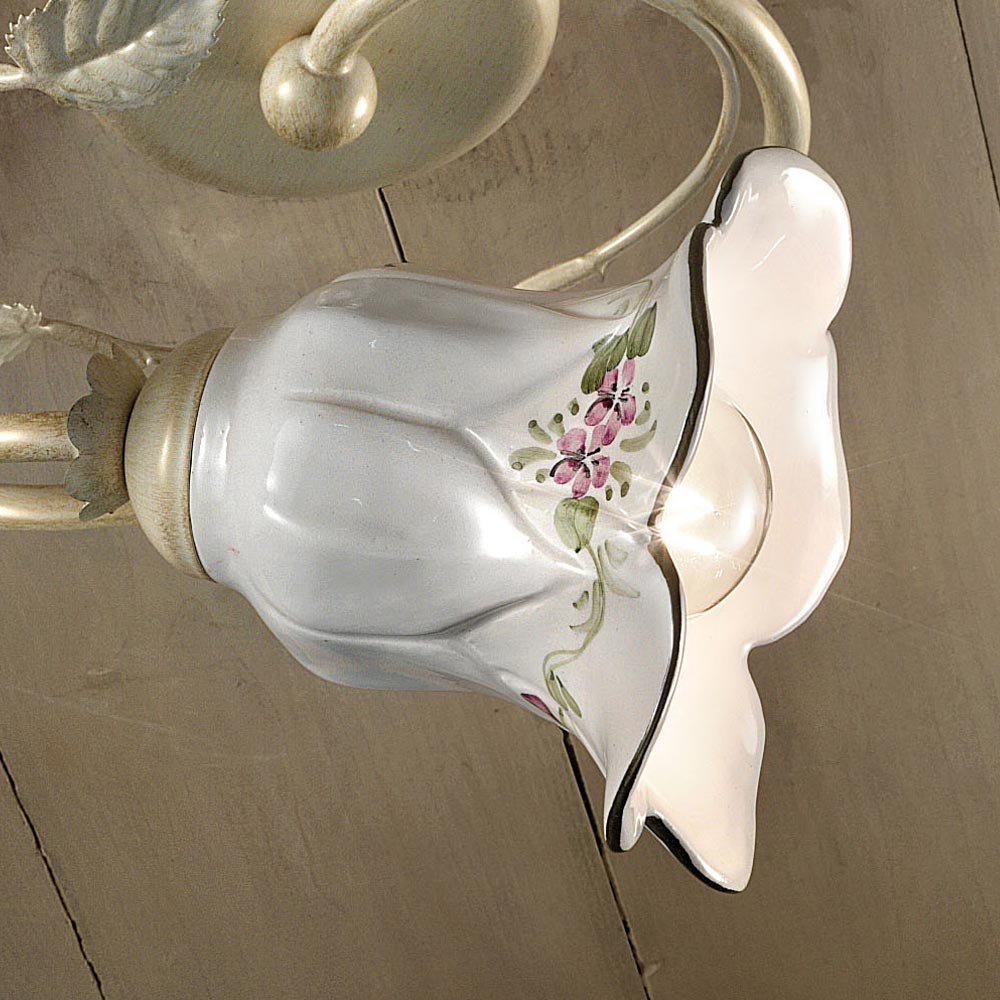 Deckenlampe aus Metall und Keramik mit handbemalten Rosen, hergestellt in Italien von Ferroluce.