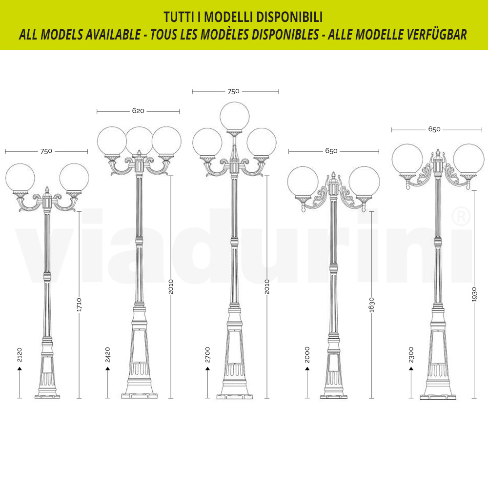 Gartenlampe mit Struktur aus Aluminiumdruckguss und Diffusor in Opalacrylkugel , vollständig in Italien hergestellt.