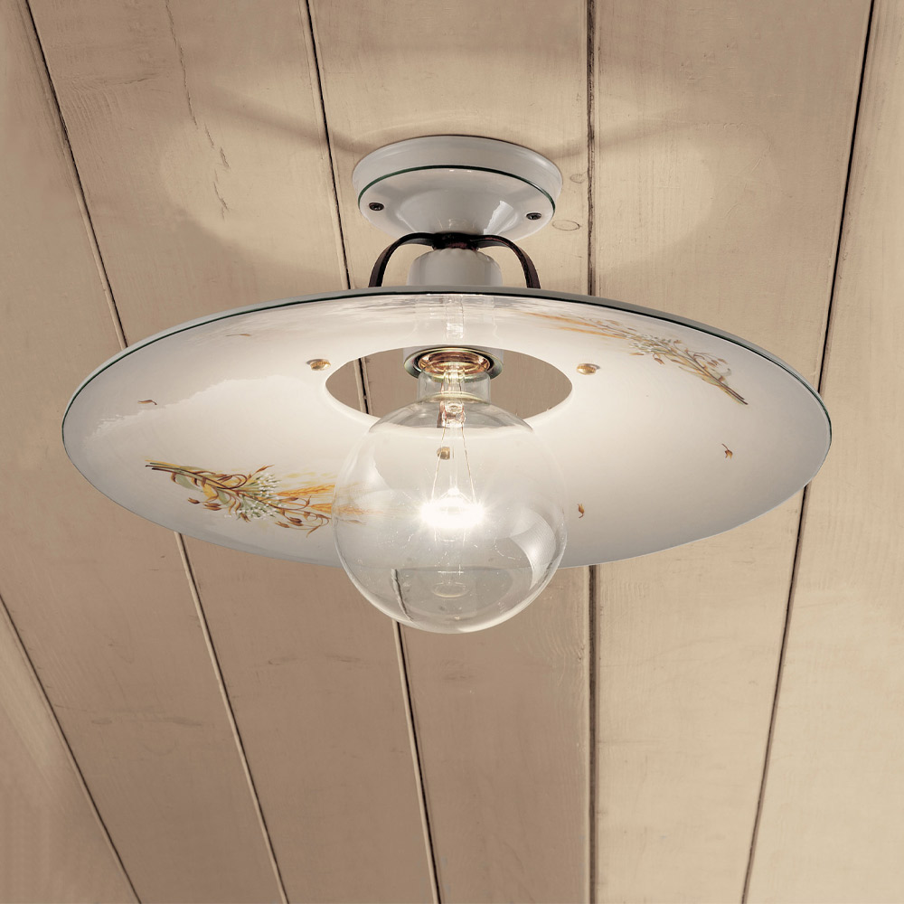 Vintage-Deckenlampe aus Roheisen und Keramik mit Handverzierungen, 2 Größen, hergestellt in Italien von Ferroluce.