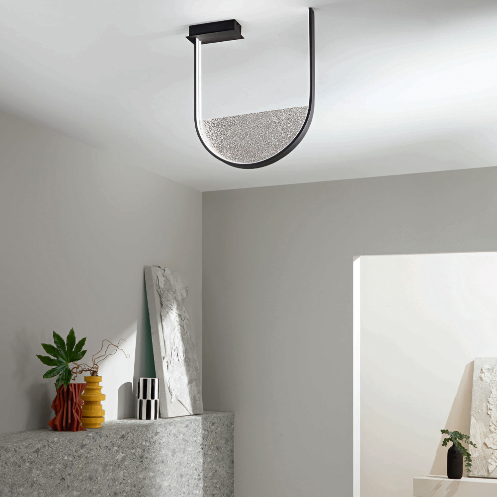 Deckenleuchte mit dimmbarem LED-Licht aus Metall und Glaseinsatz, hergestellt in Italien