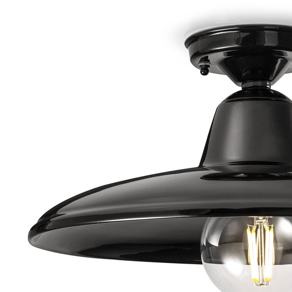 Schwarze oder weiße Deckenlampe aus Keramik und Eisen im Retro-Stil, hergestellt in Italien von Ferroluce.