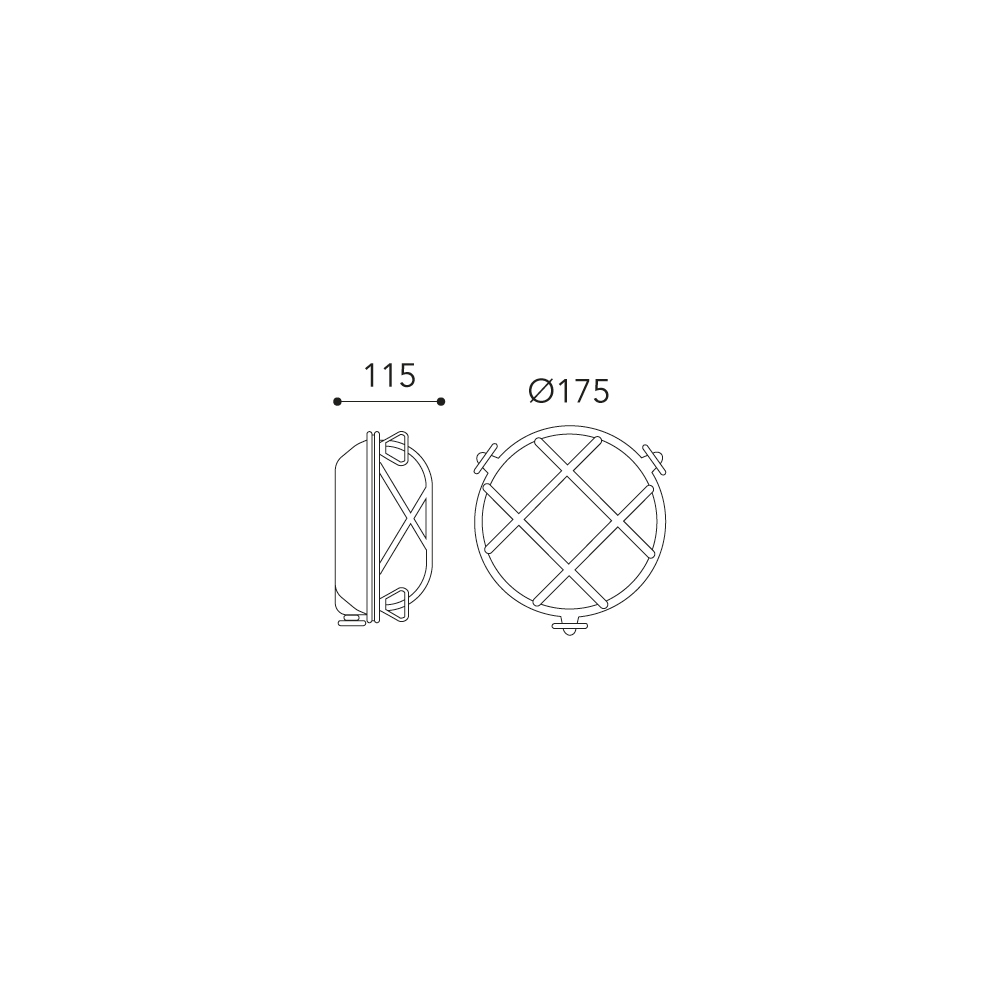 Der runde Diffusor aus Opalglas ist von einem robusten Metallgitter geschützt, das an die maritime und industrielle Welt erinnert und gleichzeitig Sicherheit und Langlebigkeit gewährleistet. Die Leuchte ist funktional und erzeugt eine angenehme Atmosphäre – ideal für die Beleuchtung von Fassaden , Eingängen , Außentreppen und Außenbereichen .