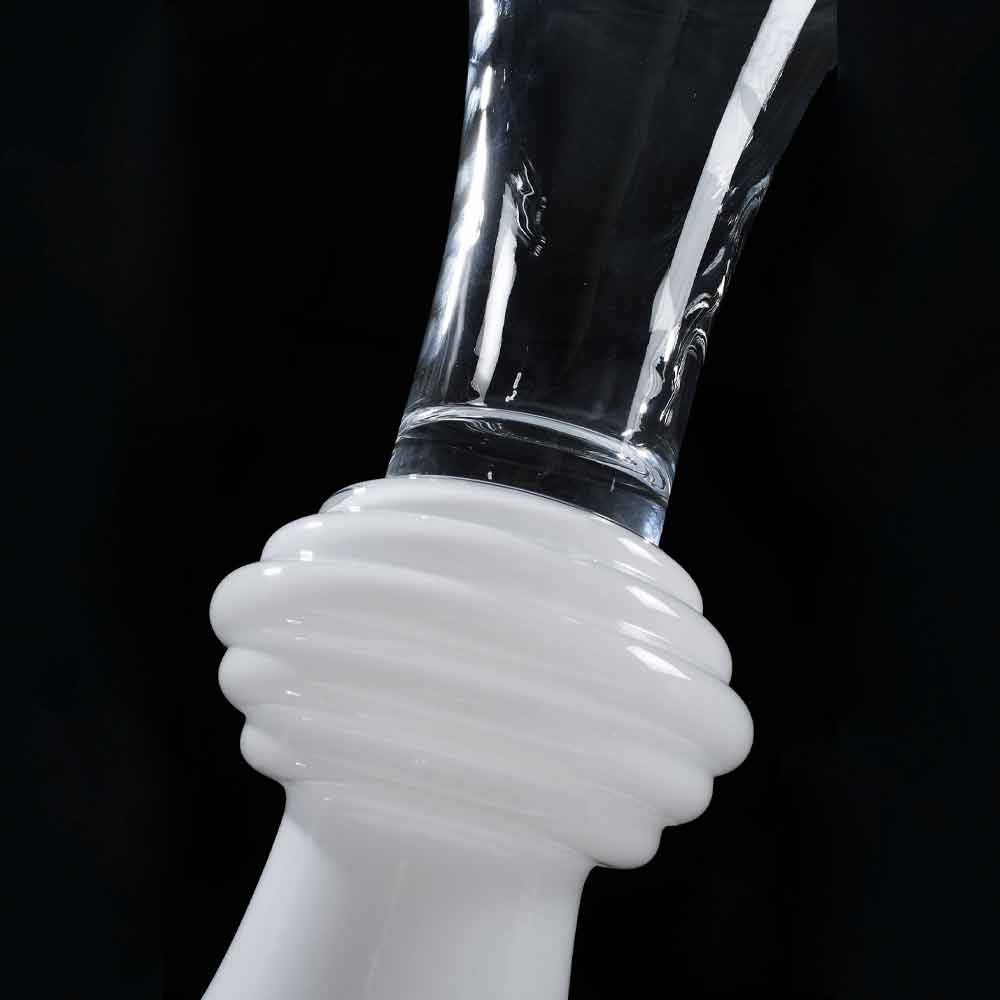 Dekorative Innenvase aus weißem und transparentem Glas, hergestellt in Italien.