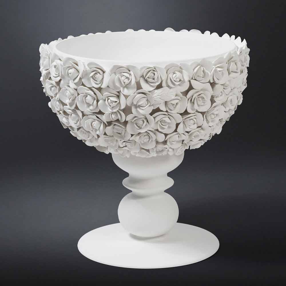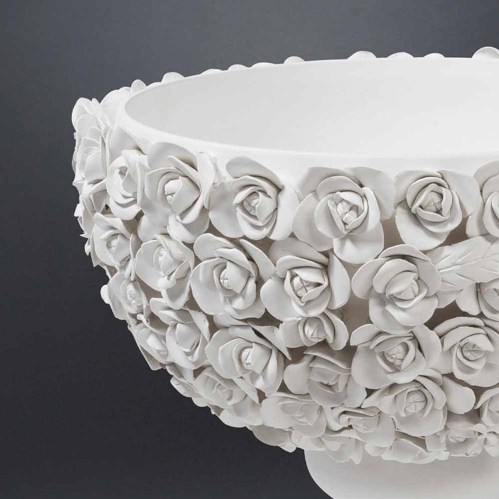 Indoor- Vase aus matt weißer Keramik, handgefertigt in Italien. Eleganz und klassischer Stil sind die Hauptmerkmale dieses wunderbaren Dekorationselements, dessen Figur durch weiche und geschwungene Linien unterstrichen wird, für ein Design, das an antike Skulpturen der italienischen Kunst erinnert. Um die Ästhetik zu bereichern, ist die besondere florale Verarbeitung, die die raffinierte Seite des Produkts noch mehr unterstreicht. Die Verwendung von Keramik und handwerkliches Können unterstreichen ihre Wertigkeit und Qualität für ein Ergebnis, das sich jeder stilistischen Situation anpassen kann. Eine ideale Ästhetik für die unterschiedlichsten Umgebungen, von der Wohnungseinrichtung bis hin zu Hotels, Restaurants, Objektbereichen, Spas, aber auch als Rahmen für Veranstaltungen und Hochzeiten.