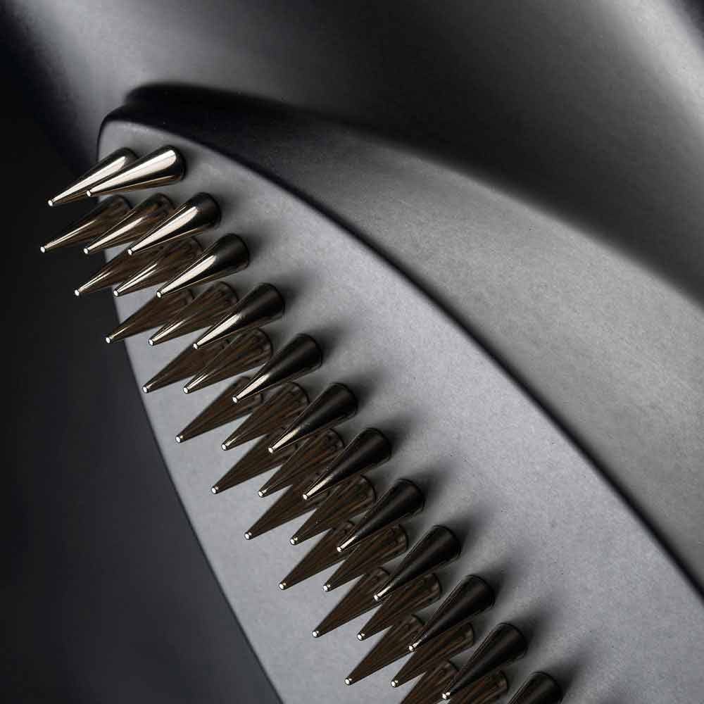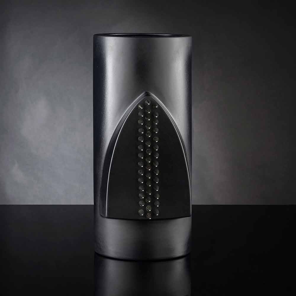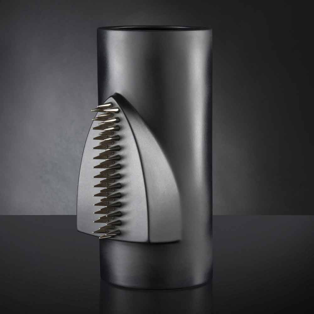 Ziervase für den Innenbereich aus mattschwarzer Keramik, angereichert mit Stahlnägeln, hergestellt durch eine Made in Italy Handwerkskunst . Aus der Begegnung zwischen der extremen Eleganz der Keramik und dem modernen Touch der Metalldetails entsteht ein dekoratives Element für moderne Umgebungen voller Persönlichkeit und Charakter, ideal für diejenigen, die es lieben, ihre Räume mit Accessoires mit starker szenografischer Wirkung auszustatten, die vervollständigen das Erscheinungsbild des Raumes und schaffen eine perfekte Harmonie. Die handwerkliche Produktion stellt eine ihrer Stärken dar, da sie den Wert und die Qualität des Produkts steigert und unterstreicht und ein exklusives und raffiniertes Ergebnis zum Leben erweckt. Ein idealer Stil für die unterschiedlichsten Umgebungen, von der Wohnungseinrichtung bis hin zu Hotels, Restaurants, Objektbereichen, Spas, aber auch als Rahmen für Veranstaltungen und Hochzeiten.