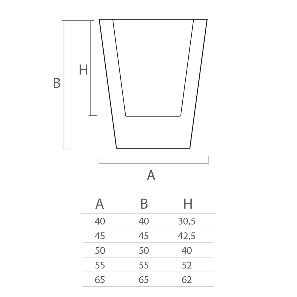 - L 55 x T 55 x H 52 cm;