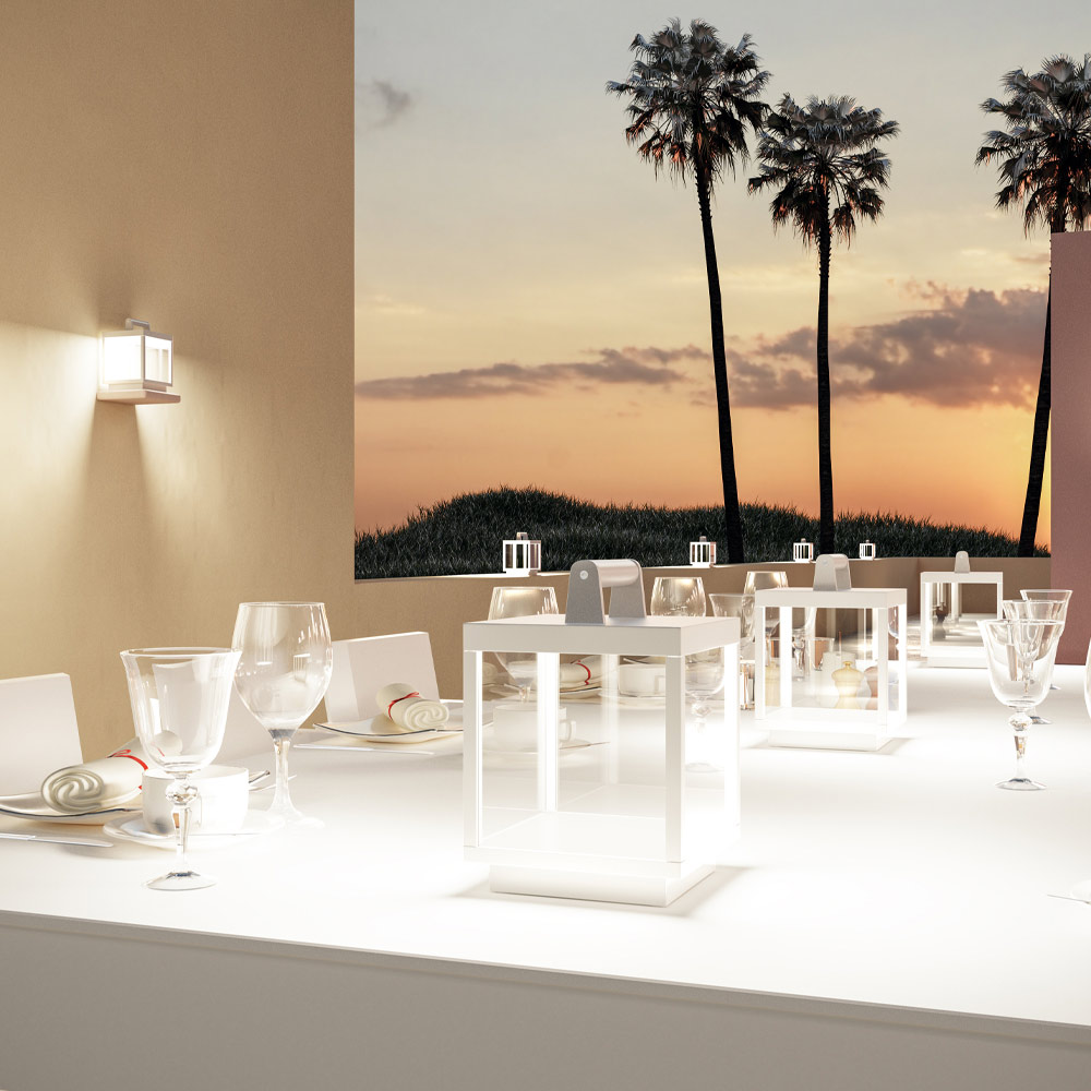Dank ihrer Formgebung eignet sie sich sowohl als Stützleuchte in Kombination mit mehreren Elementen als auch als Hängeleuchte durch die Verwendung des im oberen Teil positionierten Hakens. Das Ergebnis ist eine hochwertige Ergänzung, die in der Lage ist, Außenbereiche in Wohn- oder Objektumgebungen hervorzuheben.