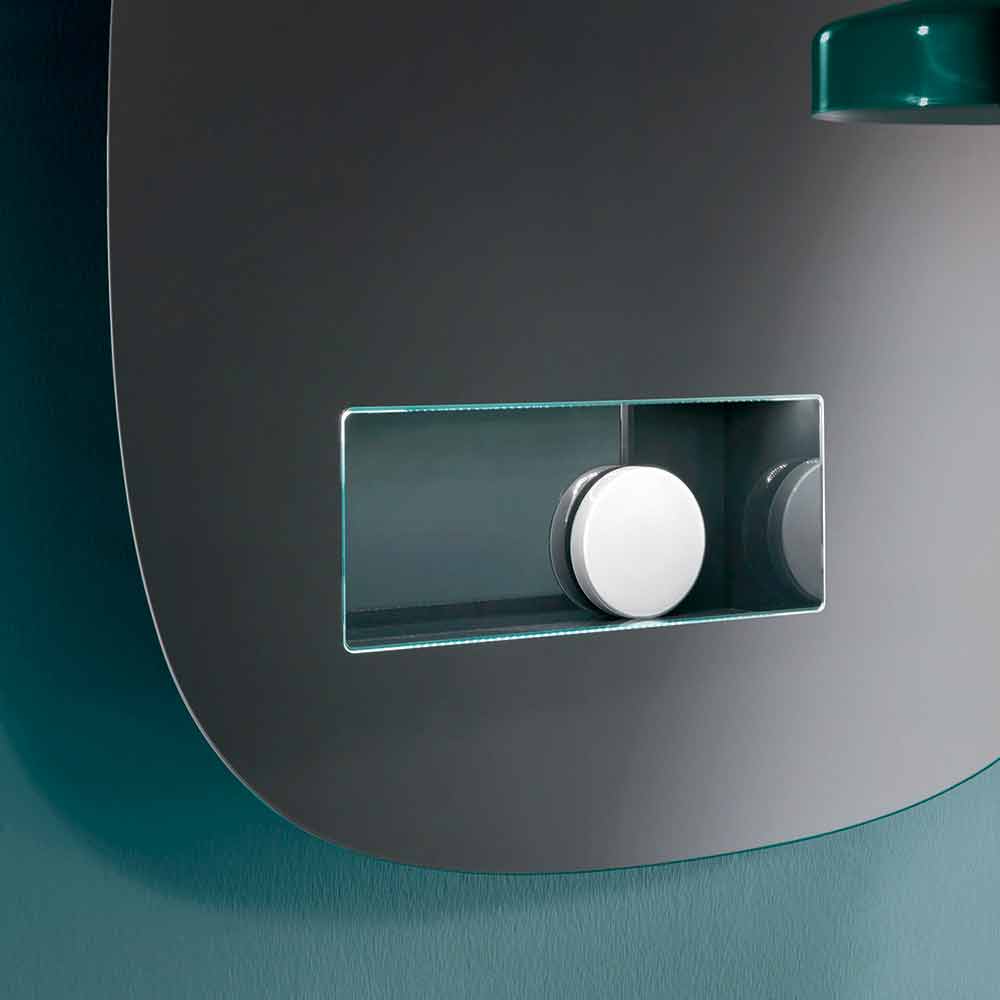 Die weichen und abgerundeten Linien begrüßen das eigentümliche und praktische Ablagefach , das innen schwarz lackiert und mit einem LED-Beleuchtungssystem mit Bewegungssensor ausgestattet ist.