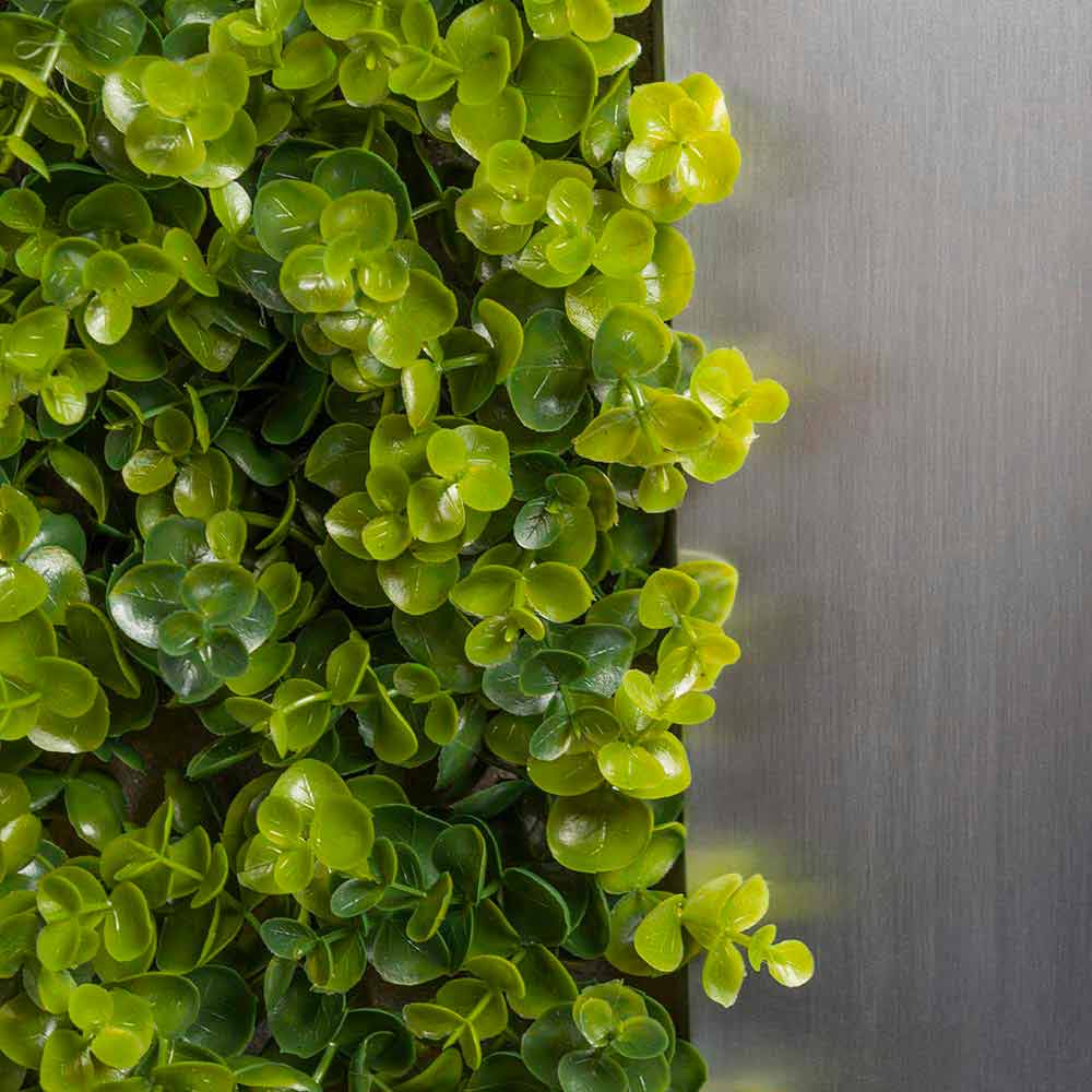 Dekoratives Wandpaneel made in Italy mit verchromter Metallstruktur und Einsätzen aus künstlichen Eukalyptusblättern . Eine Möbelidee, die aus der ungewöhnlichen Begegnung von Naturschönheiten und modernem Design entsteht und den Charme beider Welten auf exklusive Weise unterstreicht. Entstanden ist eine dekorative Ergänzung mit einer raffinierten Seele , die durch ihre extreme Vielseitigkeit und ihren raffinierten Minimalismus jede Wohn- oder Objektumgebung mit einem zeitgenössischen Stil ausstattet und füllt. Ideal, um den Wänden Ihres Hauses ein Gefühl von Dreidimensionalität zu verleihen, spielt dieses Paneel eine grundlegende Rolle, indem es dank seiner originellen und kreativen Seele jede Aufmerksamkeit auf sich zieht, die den Geist in eine grüne Landschaft bringt, die Frieden und Ruhe verleiht
