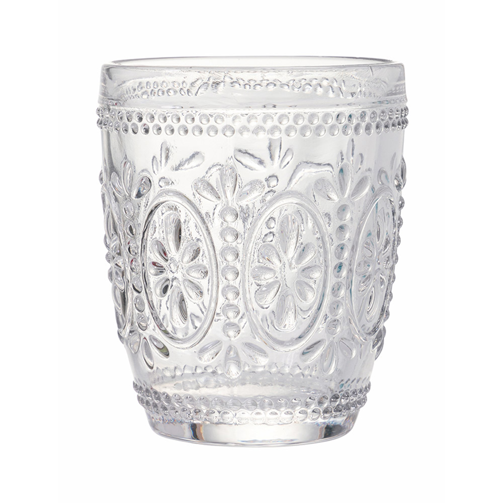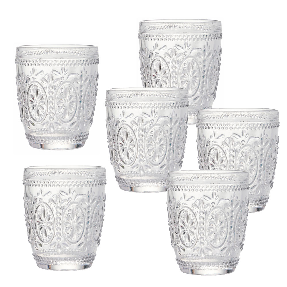 Gläserset für Wasser in transparentem Glas und barockem Dekor, 12-teilig.