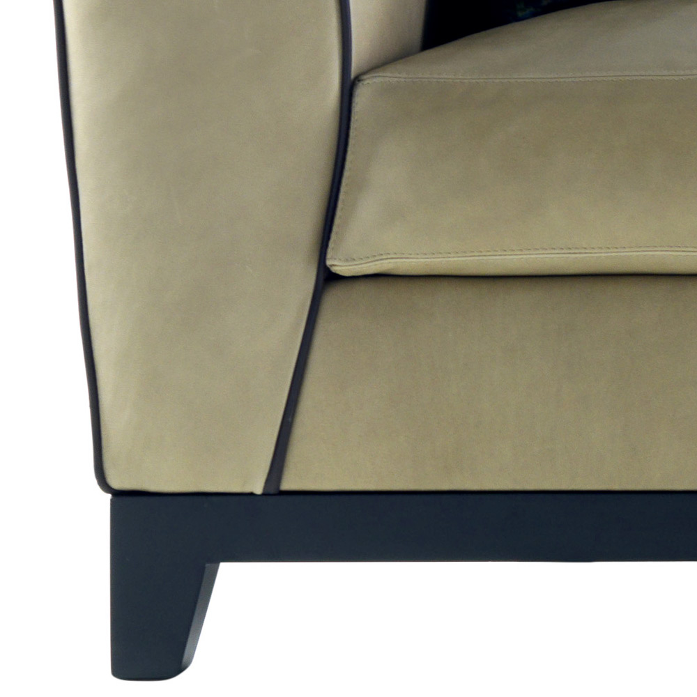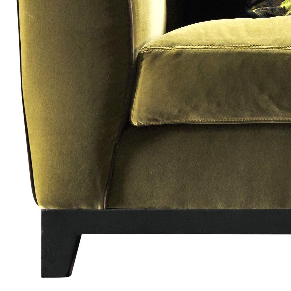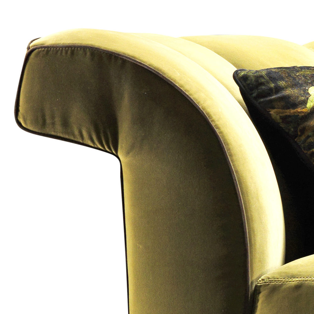 Handgefertigt in Italien mit einer Struktur (Basis, Rücken und Arme) aus massivem Buchenholz; Polsterung aus Polyurethanschaum mit unterschiedlicher Dichte, Sitzkissen aus Gänsedaunen mit flexiblem Polyurethaneinsatz.