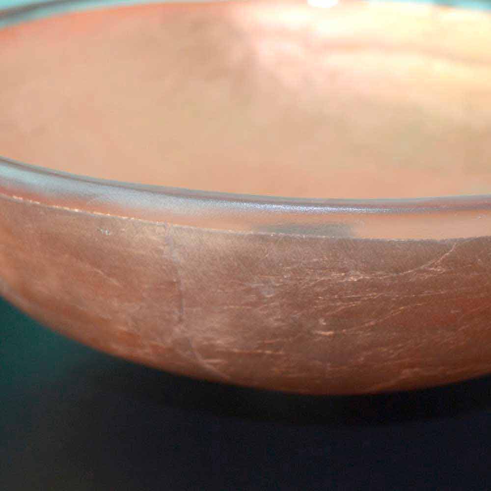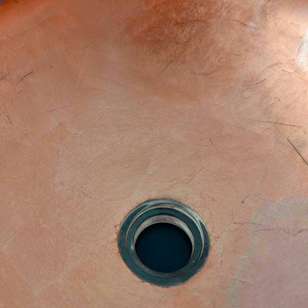 Waschbecken aus transparentem Harz und Kupferblatt.