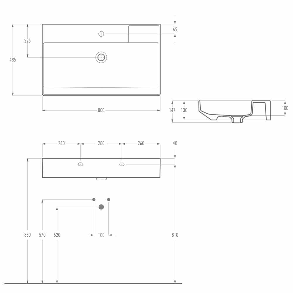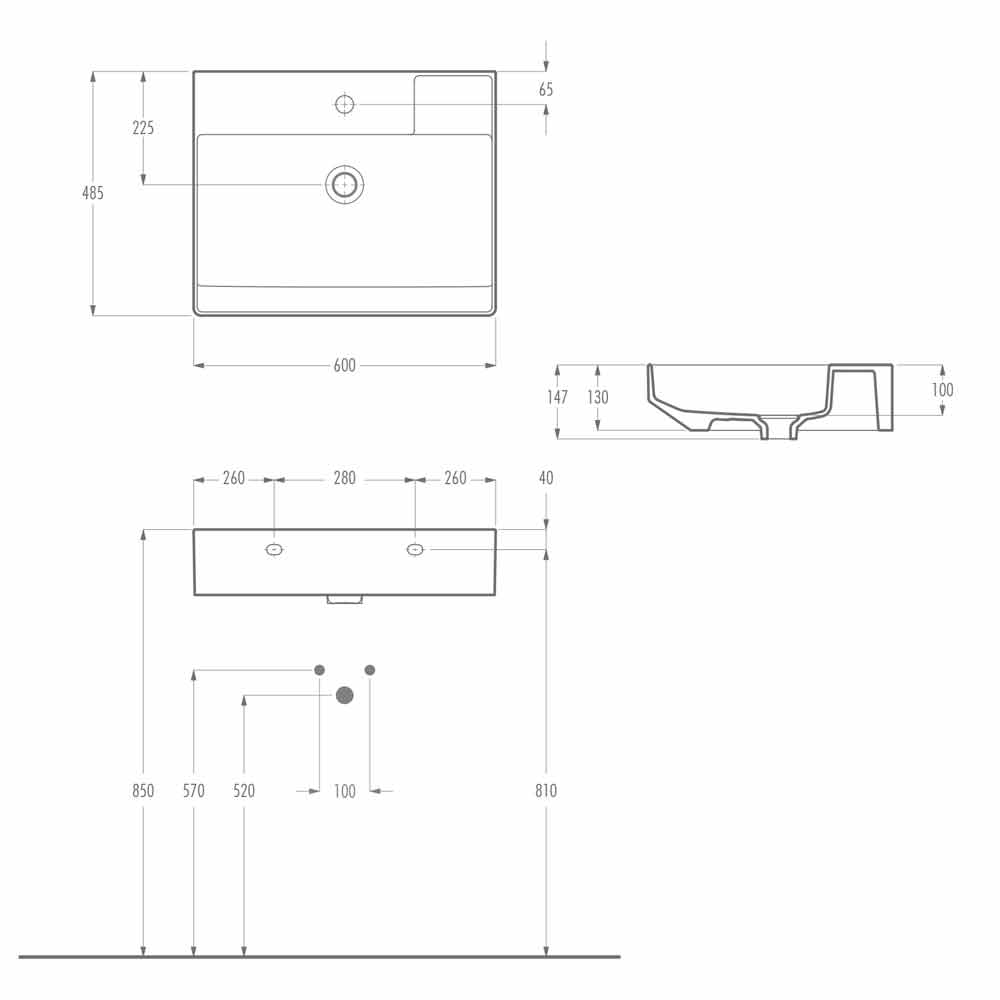 Ein Hahnloch wird erwartet, aber zum Zeitpunkt der Bestellung kann es mit drei Löchern oder ohne Loch realisiert werden, falls entschieden wird, einen Wandhahn zu verwenden. Tipp ist NICHT im Lieferumfang enthalten.