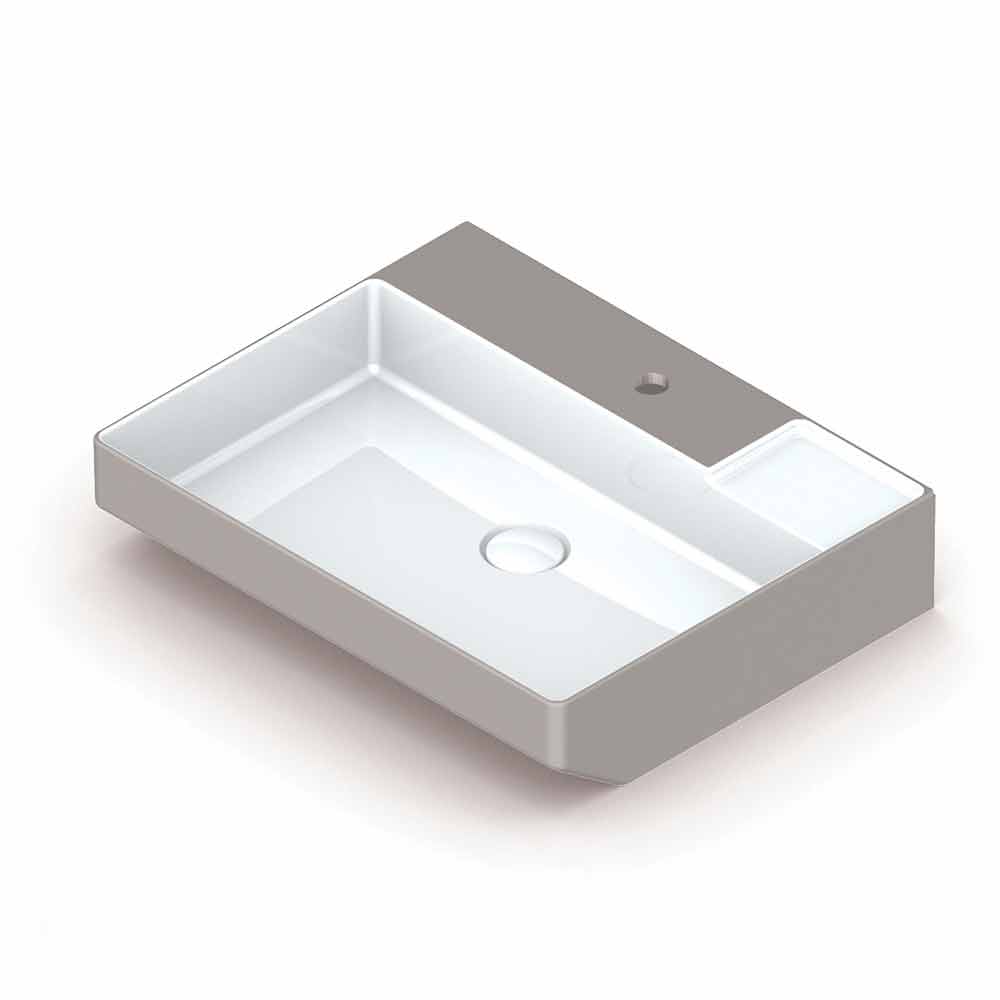 Viviano ist eine wunderbare Arbeitsplatte oder Wandspüle, die in Italien in Keramik handgefertigt wird. Sie zeichnet sich durch scharfkantige Formen und eine starke Persönlichkeit aus und eignet sich perfekt, um Ihr Badezimmer mit Stil und Design auszustatten.