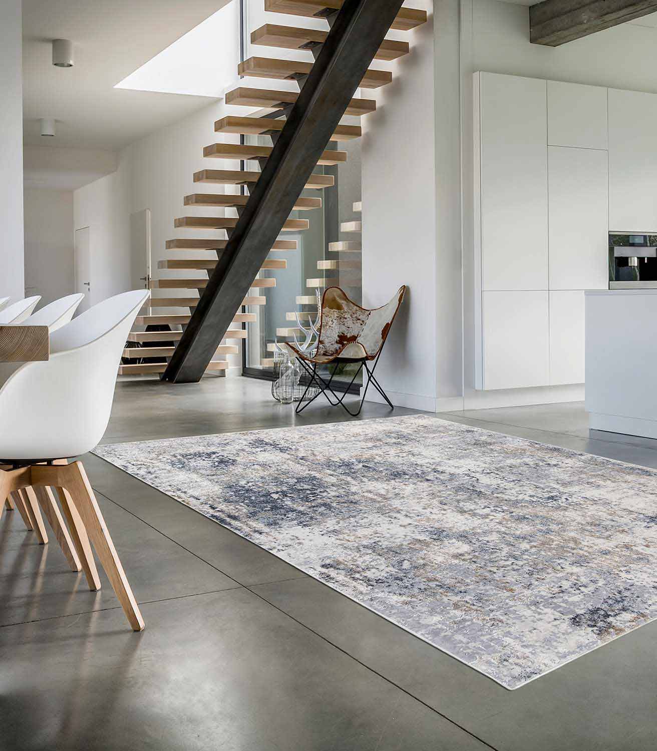 Designteppich aus Viskose und Polyester in vier verschiedenen Mustern erhältlich.