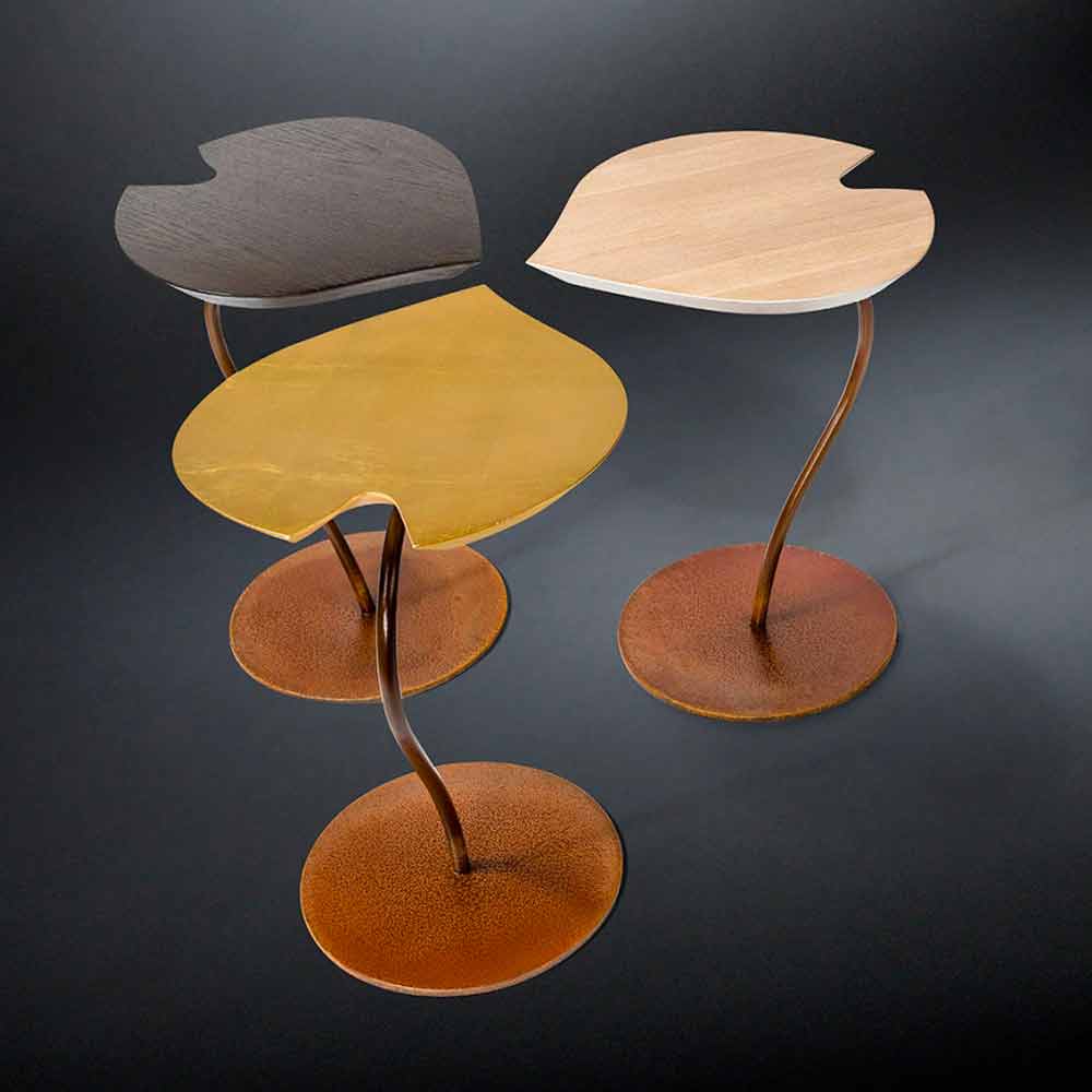 Design Beistelltisch aus Holz mit Eisenbasis Leaf