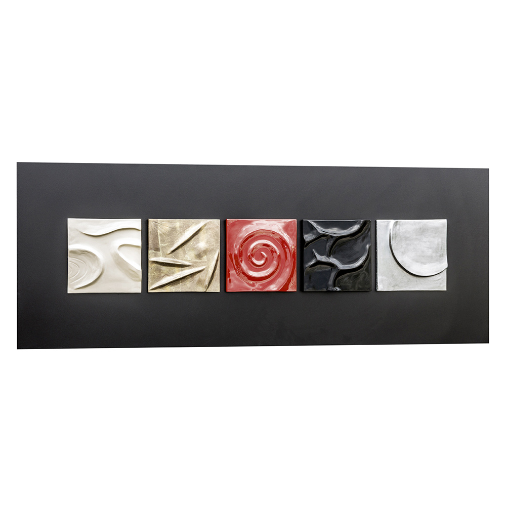 5 Elemente aus Keramik-Verbundstoff , handdekoriert mit Blattsilber und Blei.