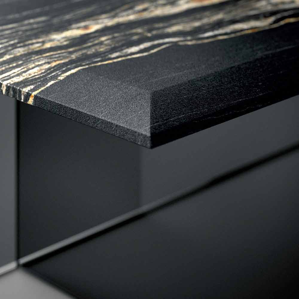 Couchtisch aus abgeschrägtem Marmor mit Glasboden im Design Made in Italy.