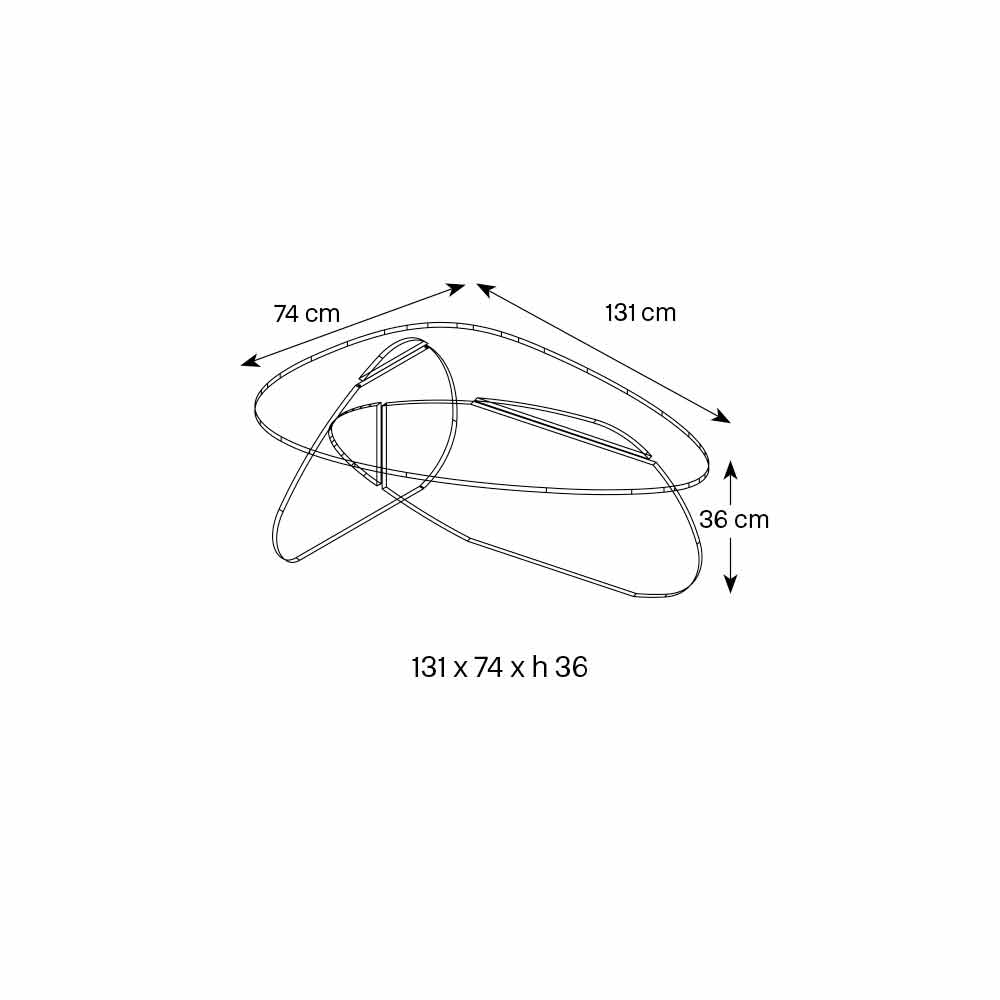 transparenten, geräucherten und geätzten Glasböden (12 mm dick), die sich zu kreuzen scheinen und das Volumen des Tisches bilden.