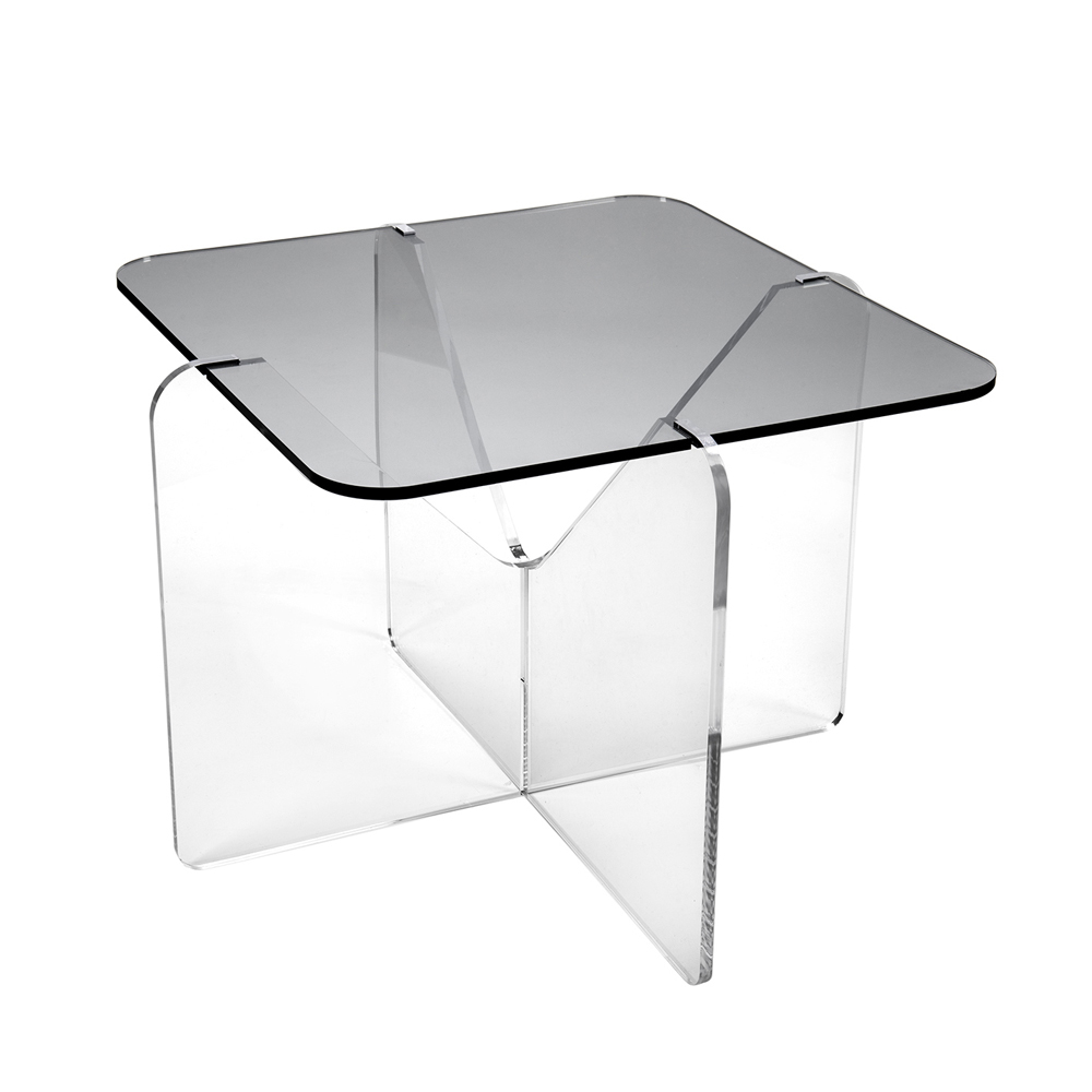 Couchtisch aus transparentem Plexiglas oder mit geräucherter Tischplatte, quadratisches Design made in Italy.