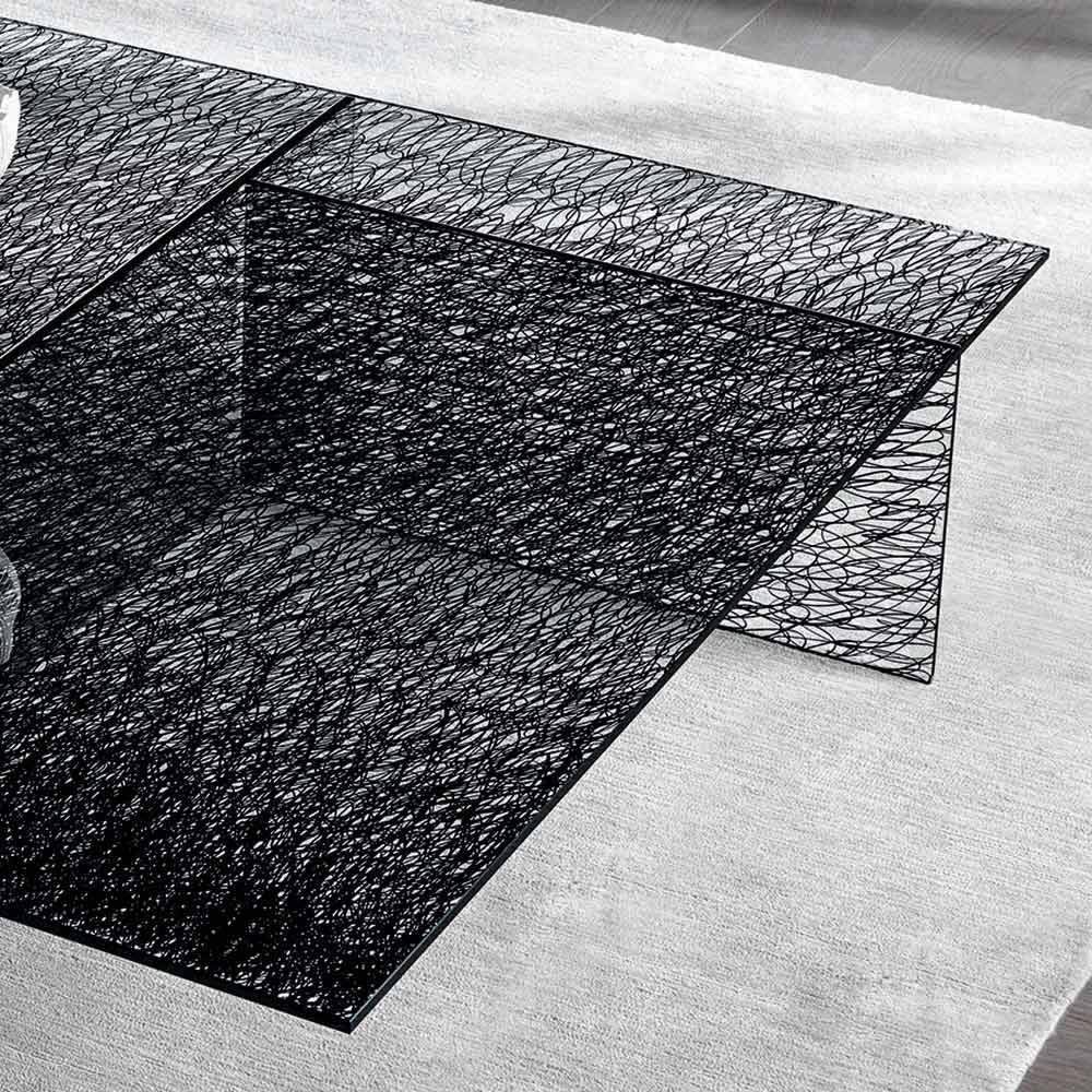 Couchtisch im modernen Design aus dekoriertem, extra klarem Glas, handgefertigt in Italien.