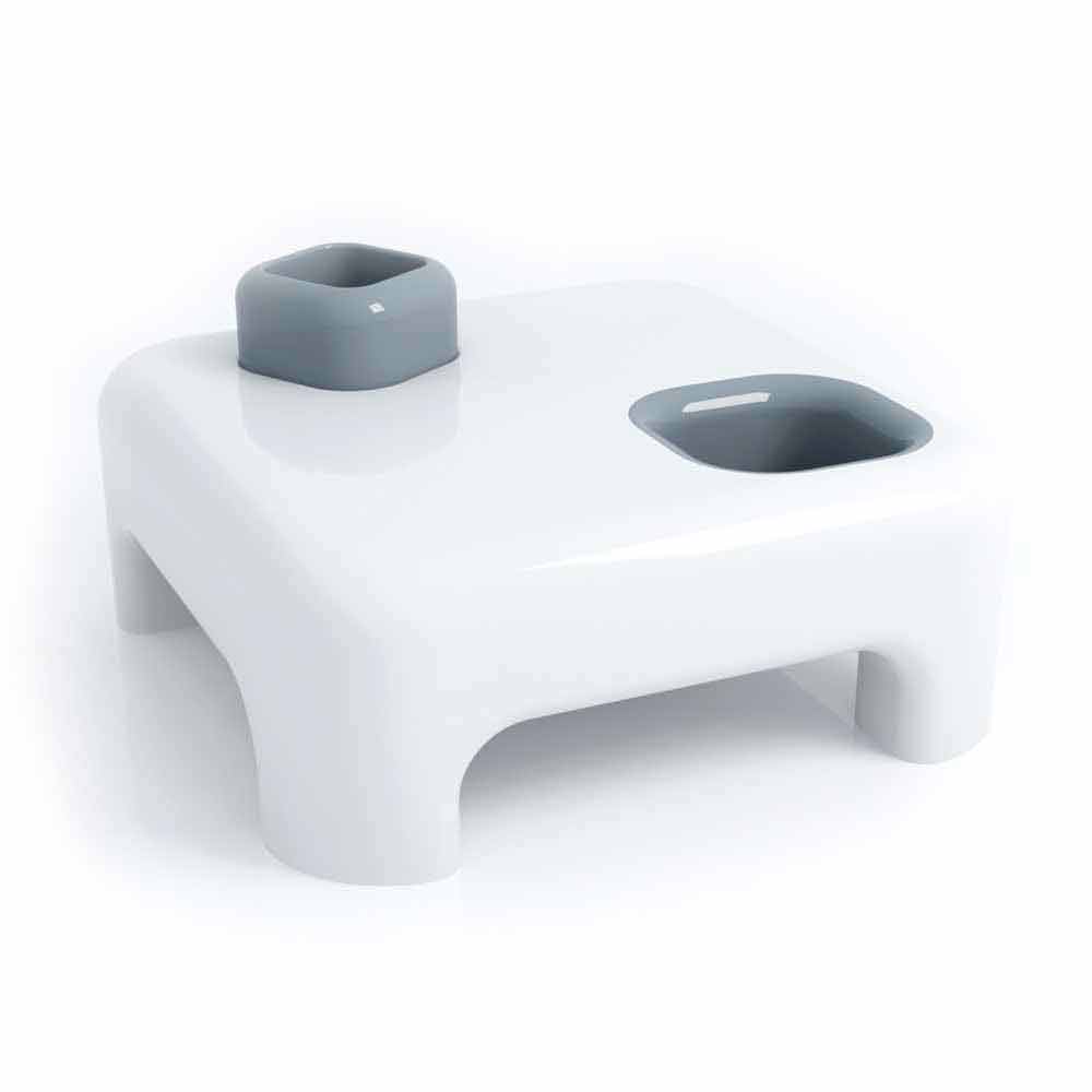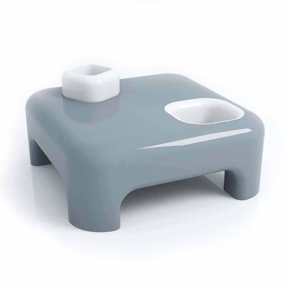Ein umkehrbarer „Würfel“ ist in einem ausgehöhlten Fach untergebracht und scheint aus dem Loch am anderen Ende des Regals herausgezogen worden zu sein. Diese drei Elemente bieten verschiedene Zusatzfunktionen: Aufsatz, Vase oder Behälter für den „Würfel“. Taschenleerer für den geschnitzten Fußabdruck, während das Loch zu einer Vase oder einem Aufbewahrungsfach werden kann (Flaschen, Zeitschriften, Pflanzen ...).
