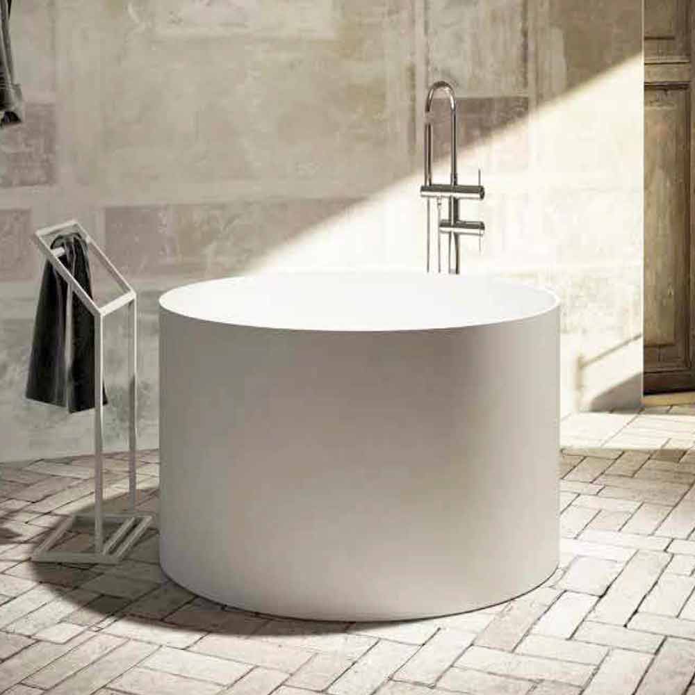 Cremona ist eine runde freistehende Badewanne, die sich ideal für moderne Möbel eignet. Ein Einrichtungsgegenstand mit weichen und leichten Linien und einem klaren, minimalistischen Design, das sich durch ein kreisförmiges Design und einen seitlichen Rand auszeichnet, der sich häufig von den runden Wänden des Pools abhebt. Mit seinem minimal-invasiven Volumen passt es perfekt in Ihr Badezimmer.