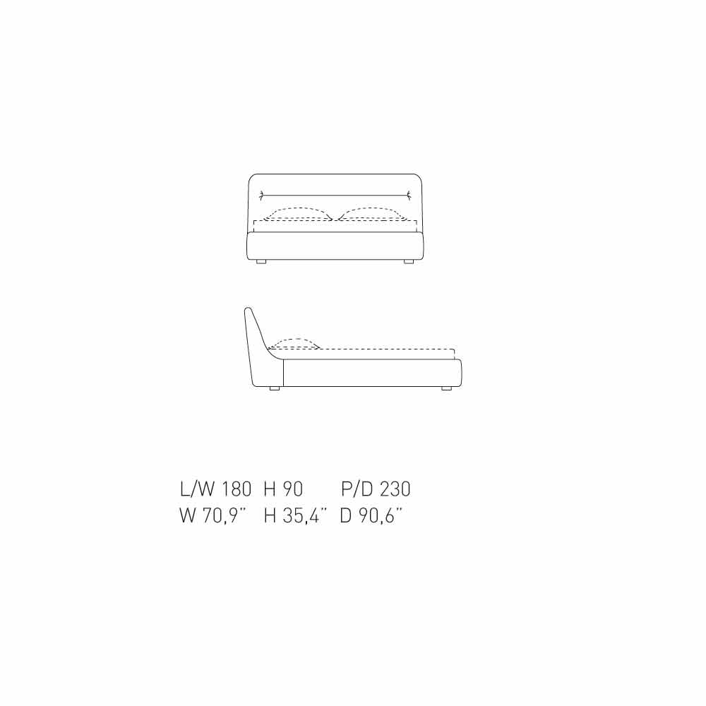 Gepolstertes Doppelbett Sleepway 180x90cm, hergestellt in Italien