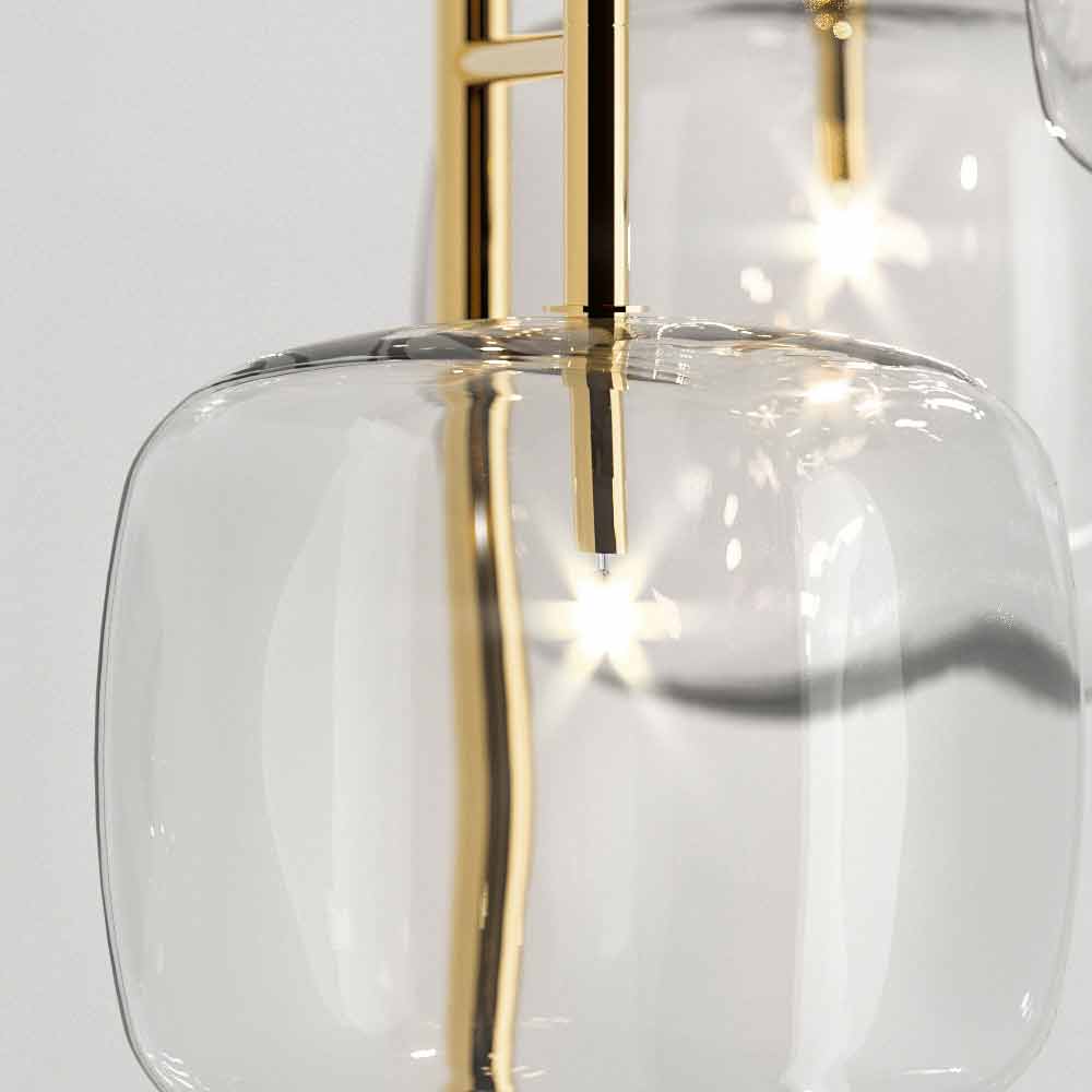 transparentem geblasenem Pyrexglas . Ideal für mehrere Installationen auch in unterschiedlichen Höhen, wodurch das Produktdesign