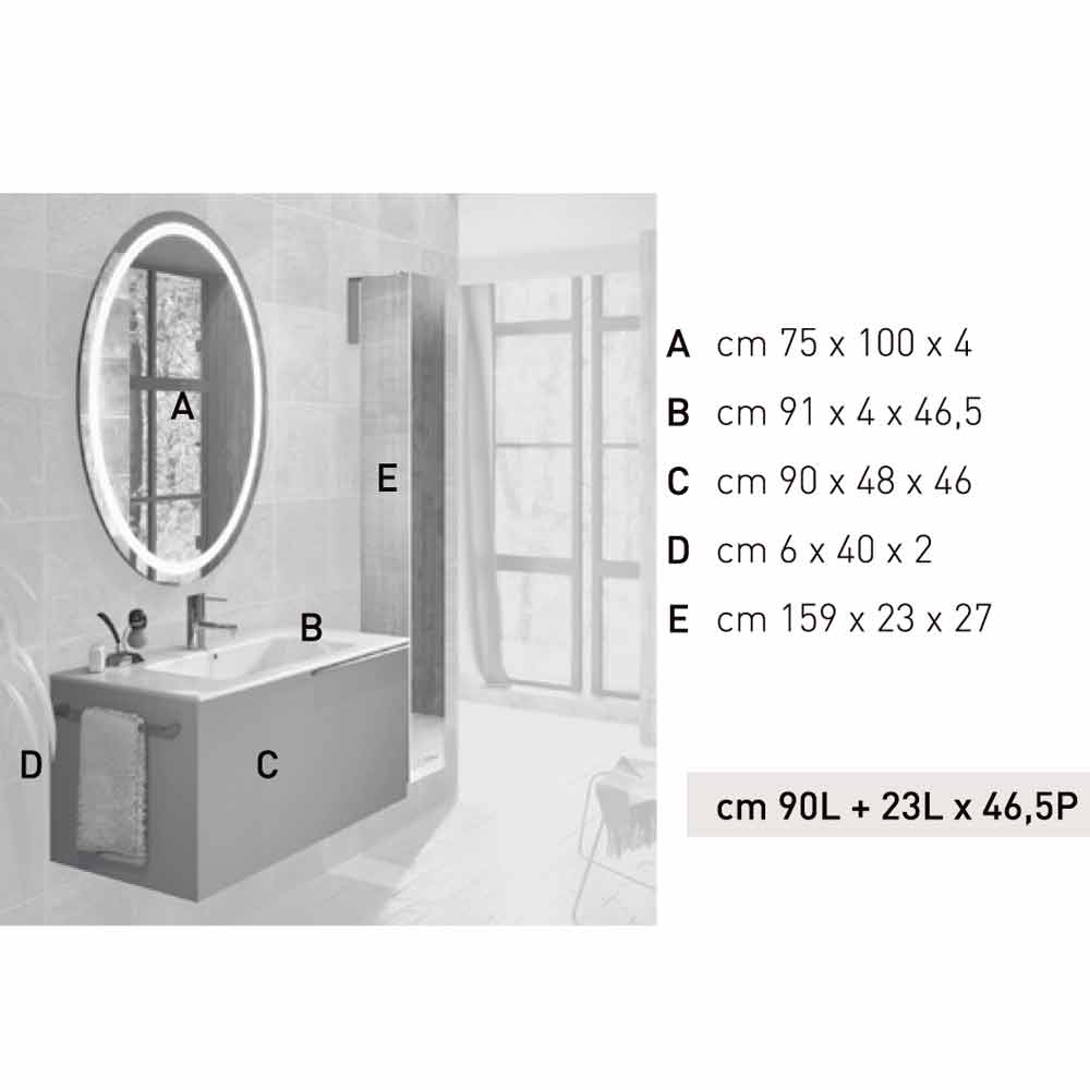 - ein ovaler Spiegel mit integrierter LED-Beleuchtung mit Edelstahlkanten; L75xH100xP4 cm;