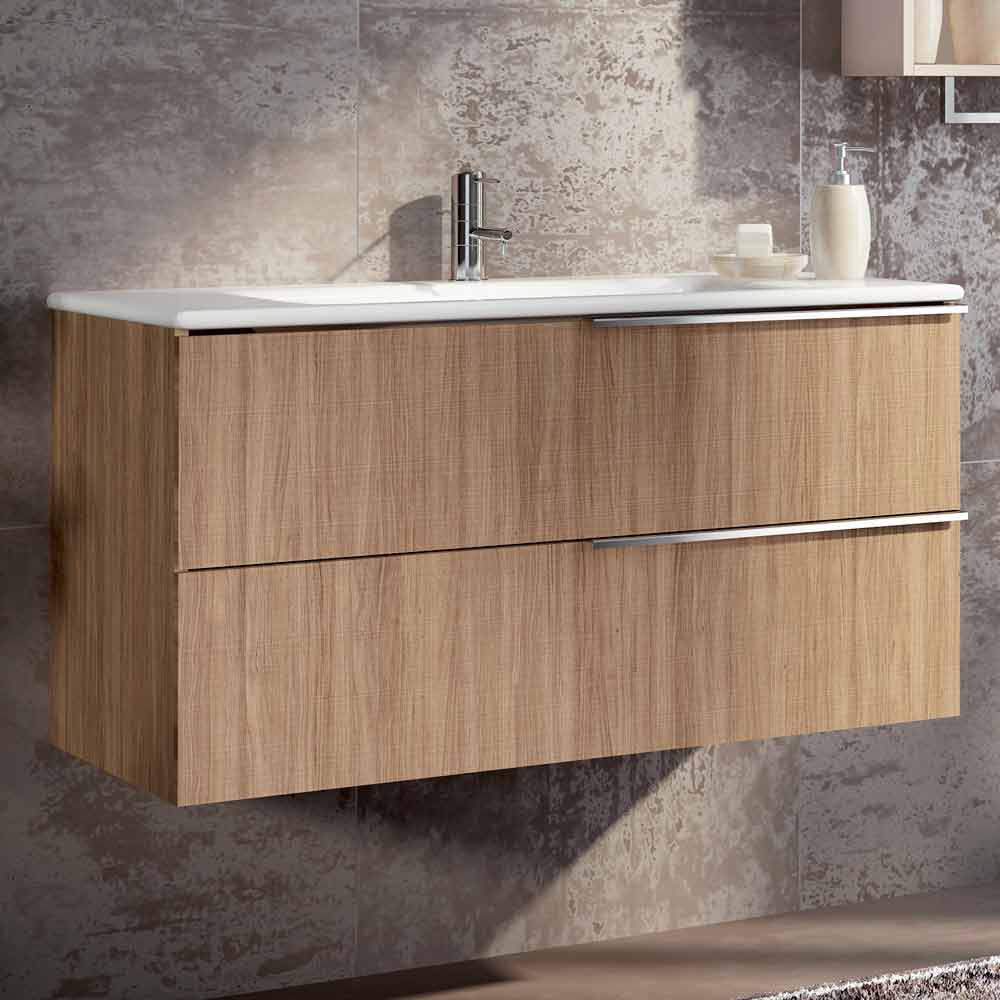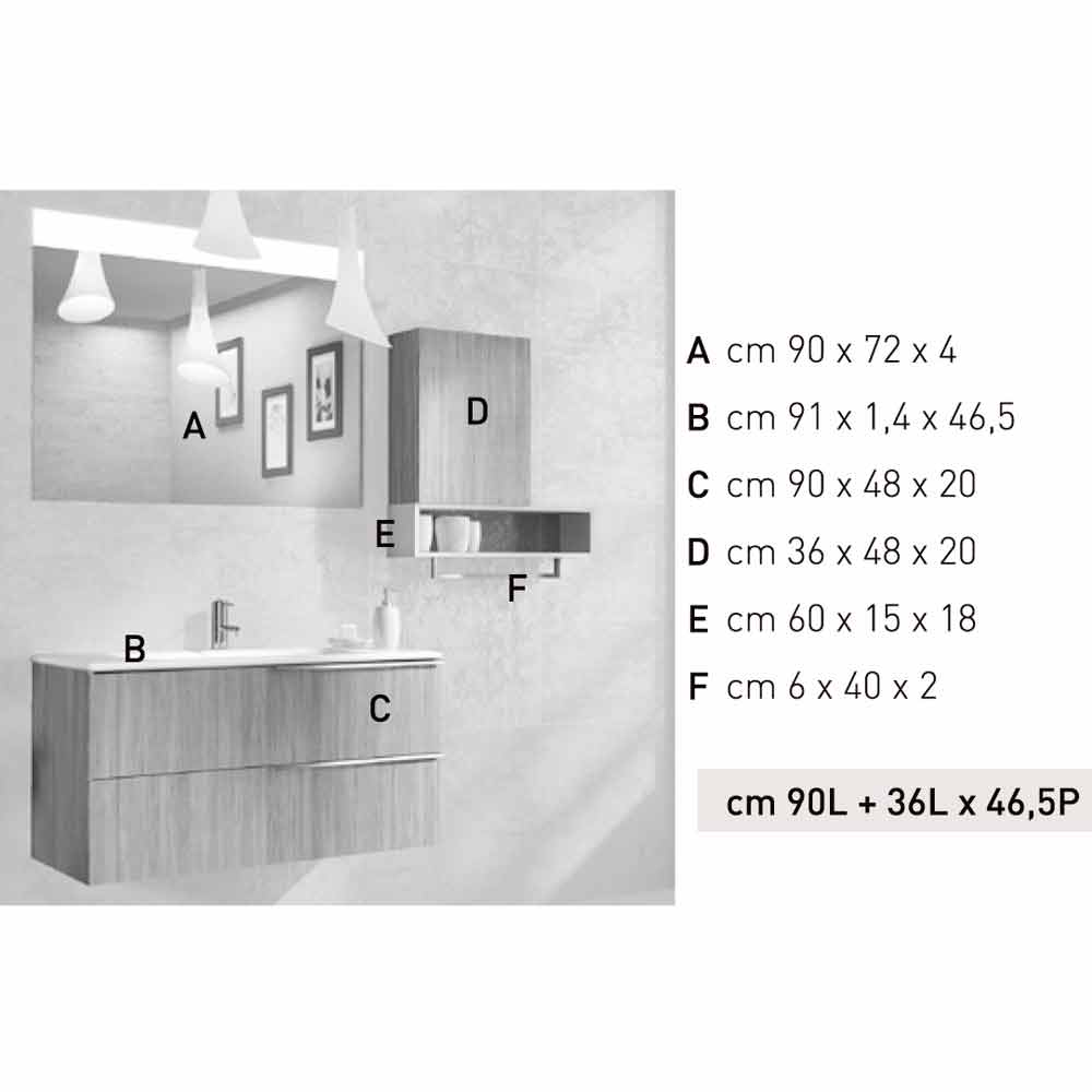 Cesena ist eine hängende Badezimmerkomposition aus Ecowood mit satinierter Lackierung; Das Ergebnis ist perfekt, um Ihr Badezimmer mit Kreativität und Stil einzurichten.