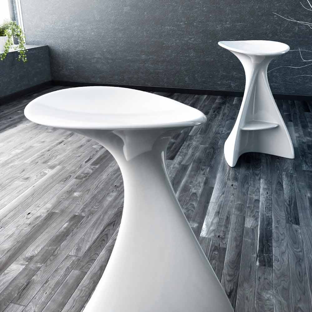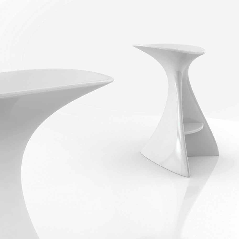 Monolithischer Hocker aus Solid Surface; gekennzeichnet durch ein organisches / biomorphes Design, das an die Welt der Science-Fiction erinnert.