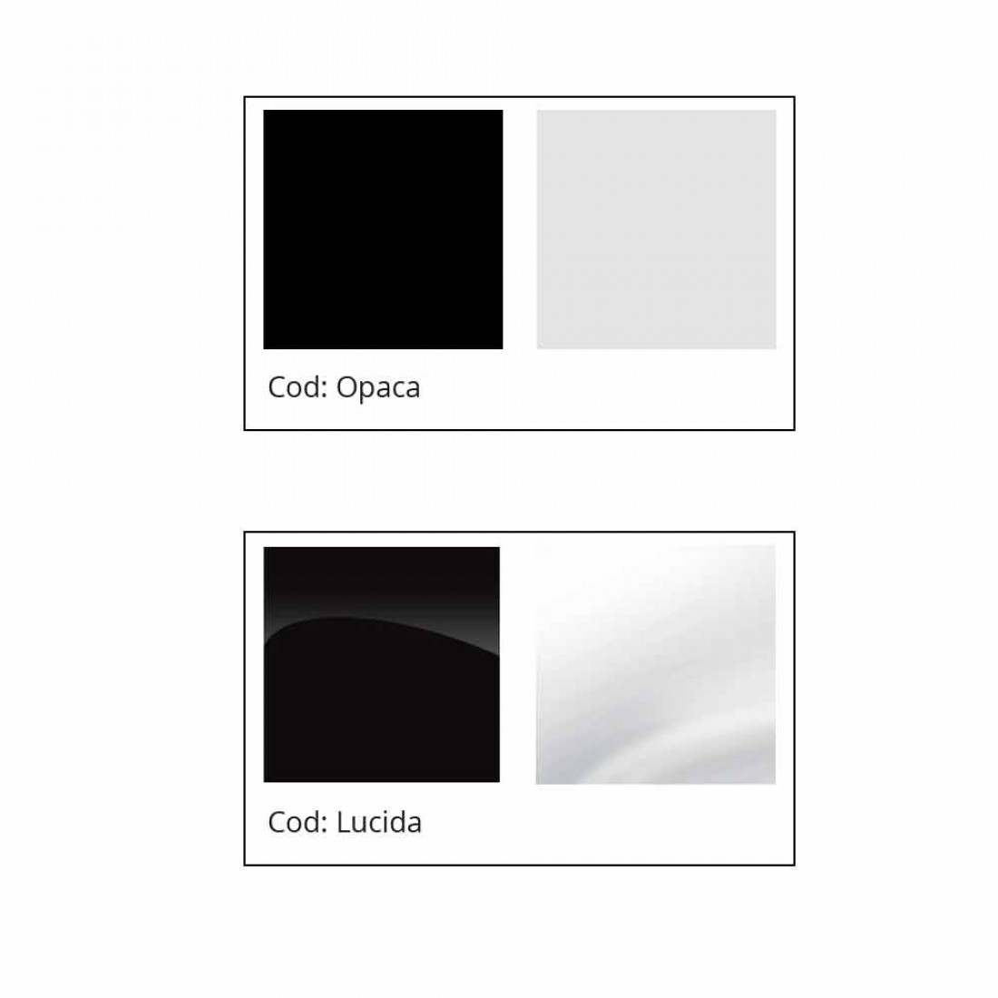 Vega ist in verschiedenen Farben erhältlich und es ist möglich, die Art der glänzenden oder matten Oberfläche zu wählen. Geben Sie die gewünschte Oberflächenbehandlung an, indem Sie sie in das entsprechende Feld neben dem Produktblatt eintragen.