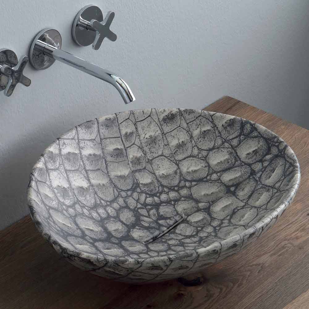 Aufsatzwaschbecken aus Keramik in Kokosnuss made in Italy Tiere