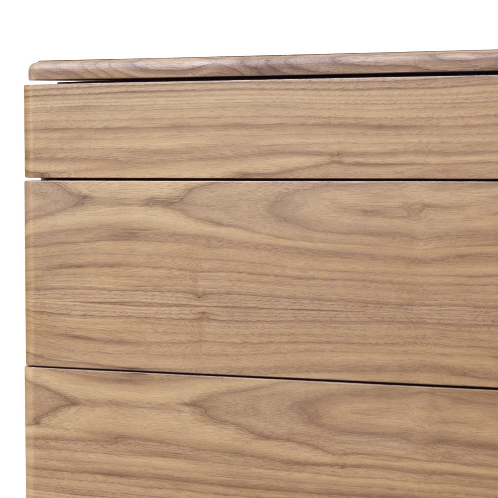 Boden und Platte aus Nussbaum Canaletto, Fronteinsätze aus Naturleder.