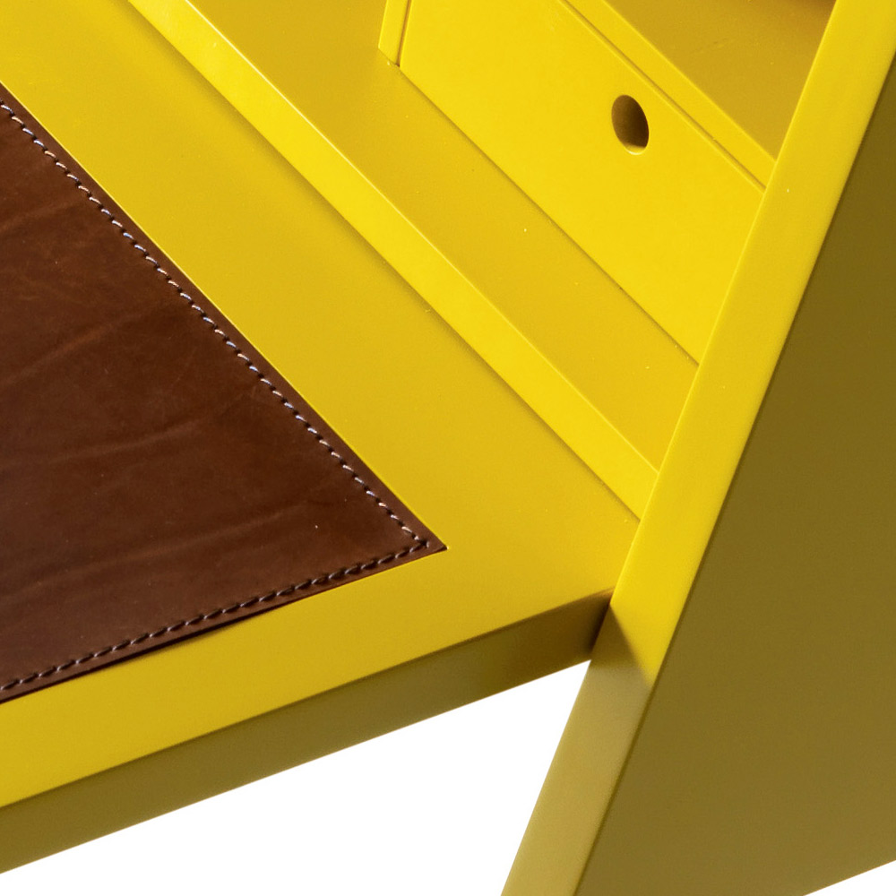 Moderner Designschreibtisch mit mehrschichtiger Struktur aus lackiertem Holz in RAL-Farben.