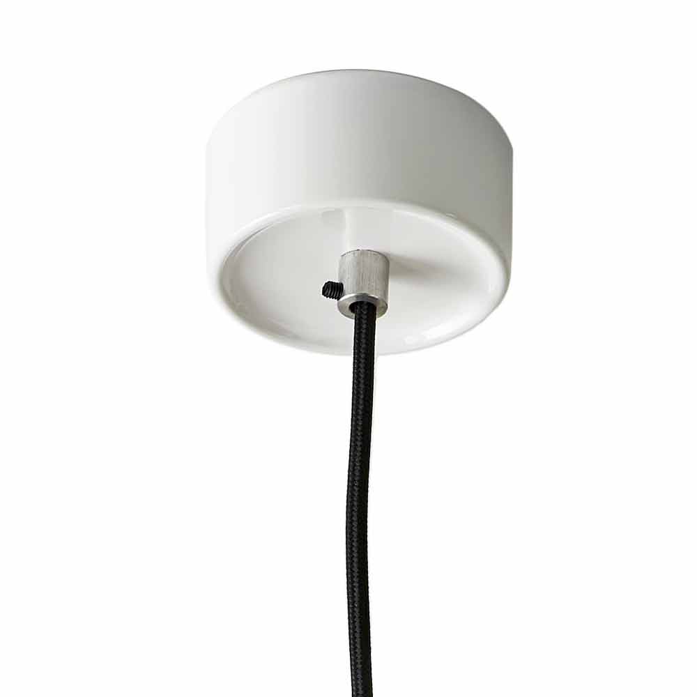 Die märchenhafte Asia Pendelleuchte wurde aus Keramik in Weiß und Grau gefertigt; Klasse ist das schwarze Canvas-Kabel und die Aluminium-Kabelklemme.