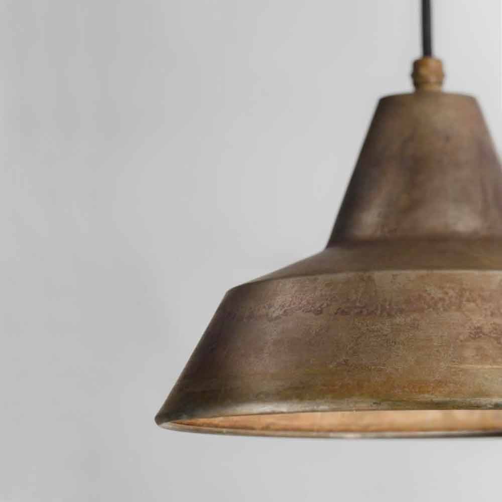 Virinia ist eine wunderschön geformte Pendelleuchte in Glockenform und besticht durch sein ausgezeichneten industriellen Retro Stil. Virginia verleiht einen rauen und vollkommenen naturbelassenen Anschein, der in jedem Winkel seine besonderen Eigenschaften perfekt in Szenierung bringt. Ihr minimlistischer Stil schafft verspielte Lichteffekte und lässt den Raum in seiner Wesentlichheit erstrahlen. Bei einer bestimmten Behandlungsmethode wird das Ausgangsmaterial mit Wasserstoffperoxid eingesprüht und bringt damit die Alterung in Schwung (Näheres siehe unten).