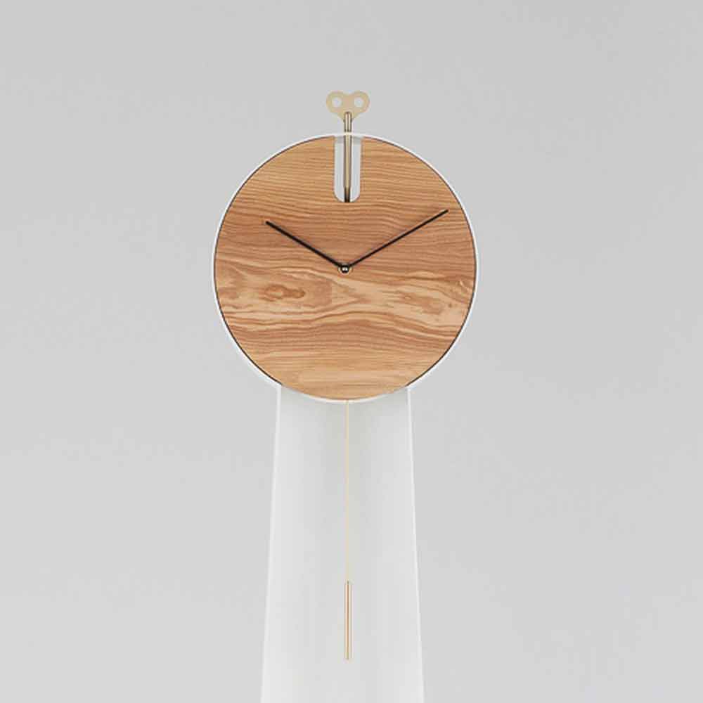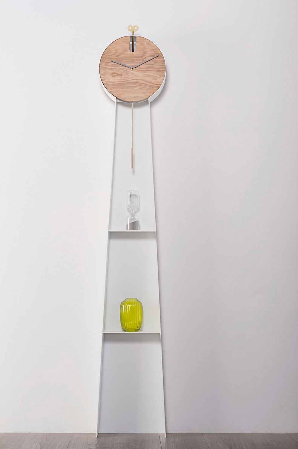 Bodenpendeluhr ist ein innovatives Objekt, das ein innovatives und äußerst modernes Design mit einer klassischeren Note kombiniert, die der für alte Pendeluhren typische Aufzugsschlüssel aus Messing verleiht. Die Struktur ist vollständig