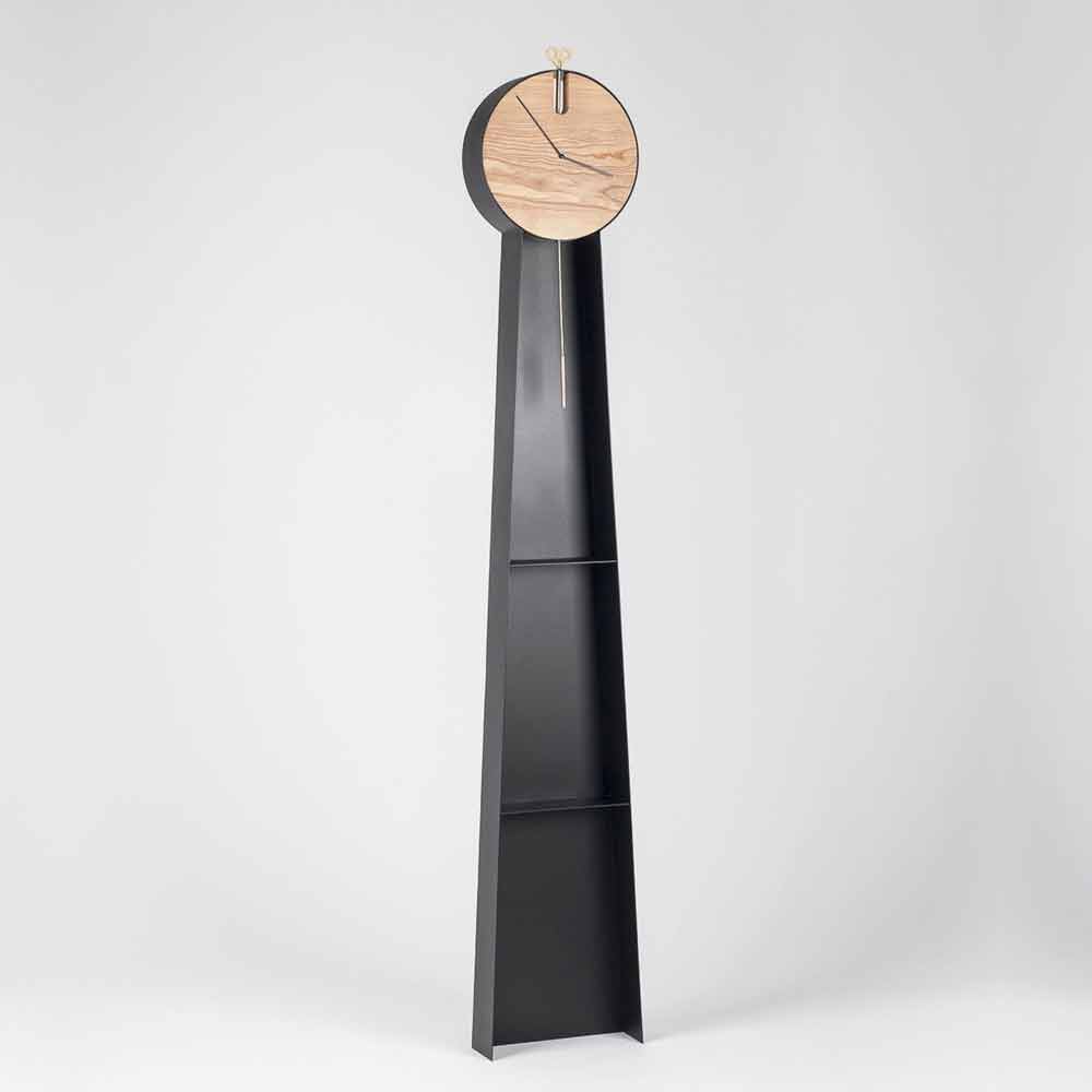 Bodenpendeluhr aus Stahl und Esche mit Messingdetails Made in Italy.