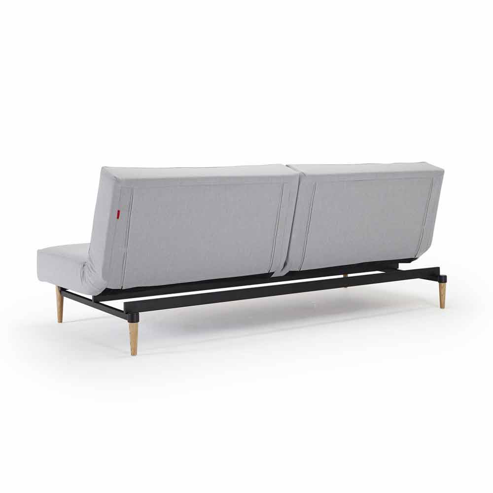 Splitback kommt mit einer mattschwarzen Stahlstruktur und hell gebeizten Holzbeinen.
