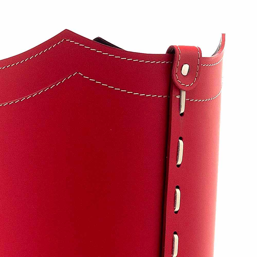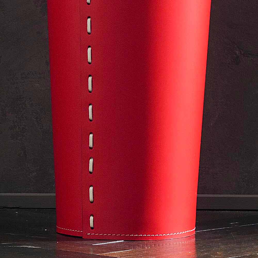 Regenschirm ist aus regeneriertem Leder, sowohl innen als auch außen. Der Boden ist aus Sperrholz, das ebenfalls abgedeckt ist. Im Inneren befindet sich eine praktische Kunststoff-Tropfschale.