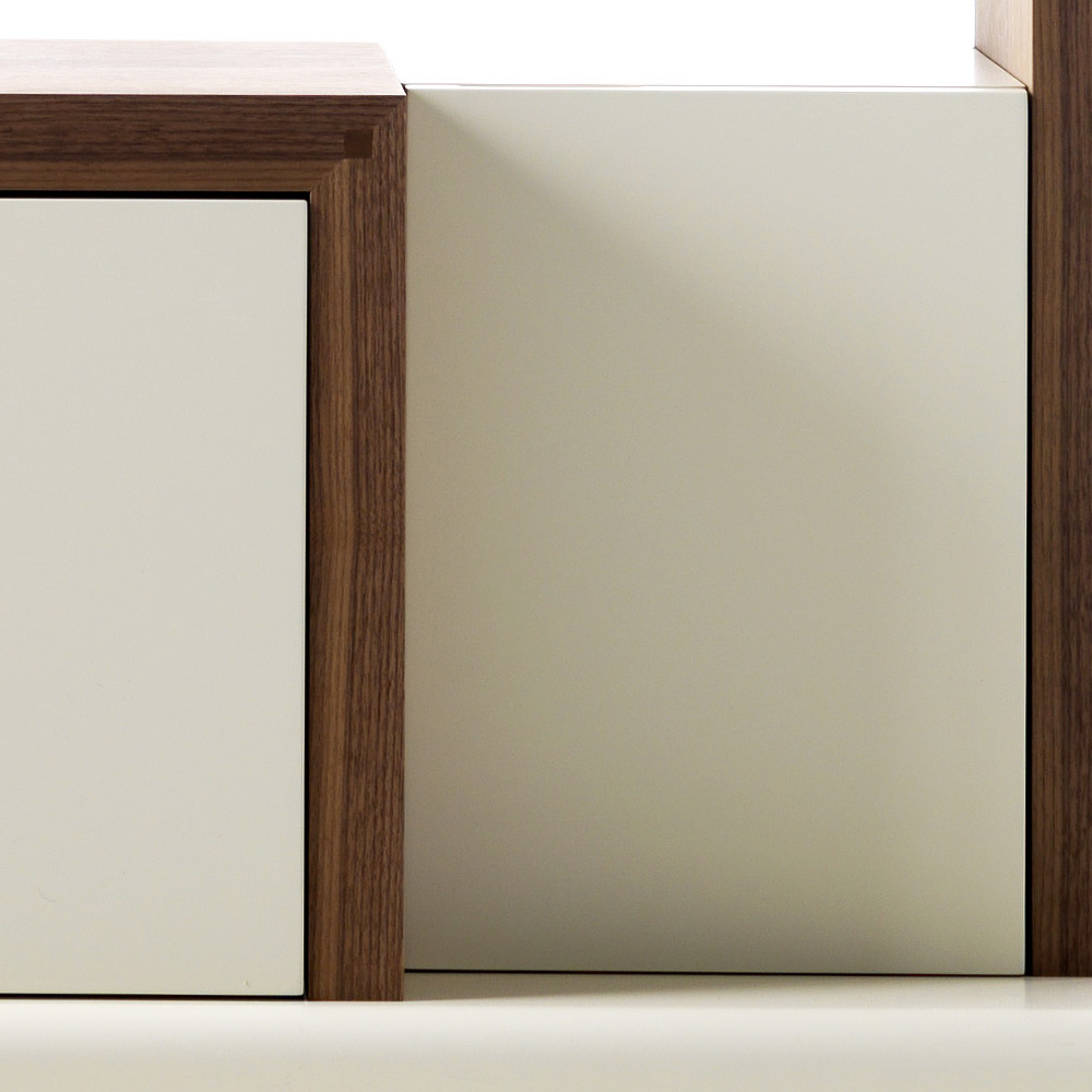 Die Grilli My Cat-Aufbewahrungseinheit besteht aus mit Nadelholz-Nussbaum furnierten Tischlerplatten.