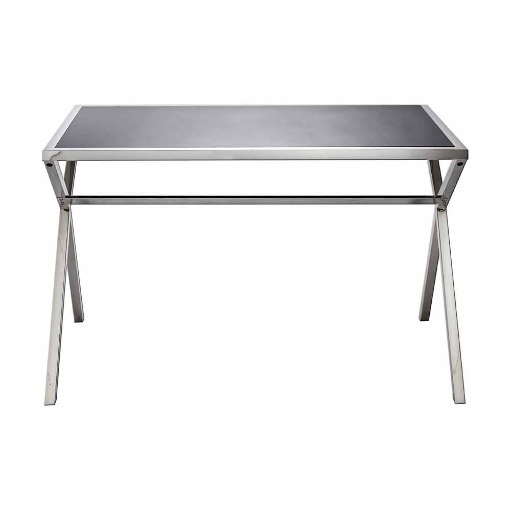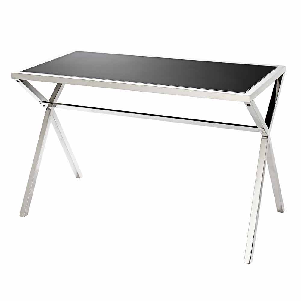 Design Schreibtisch aus Stahl und glänzend schwarzem Glas L120xH75cm Millon