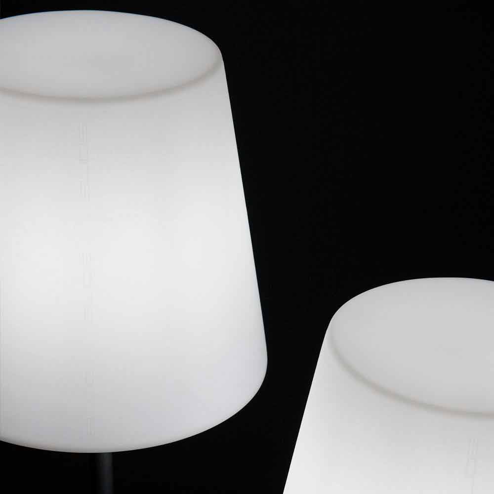 Der Lampenschirm besteht aus hochweißem Polyethylen und der Fuß aus verzinktem Stahl. Für dieses Möbelstück sind drei verschiedene Größen erhältlich: