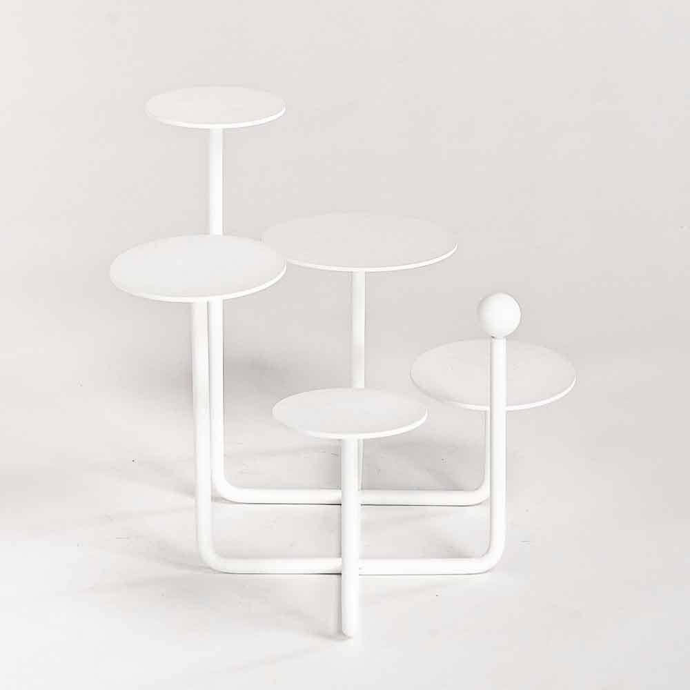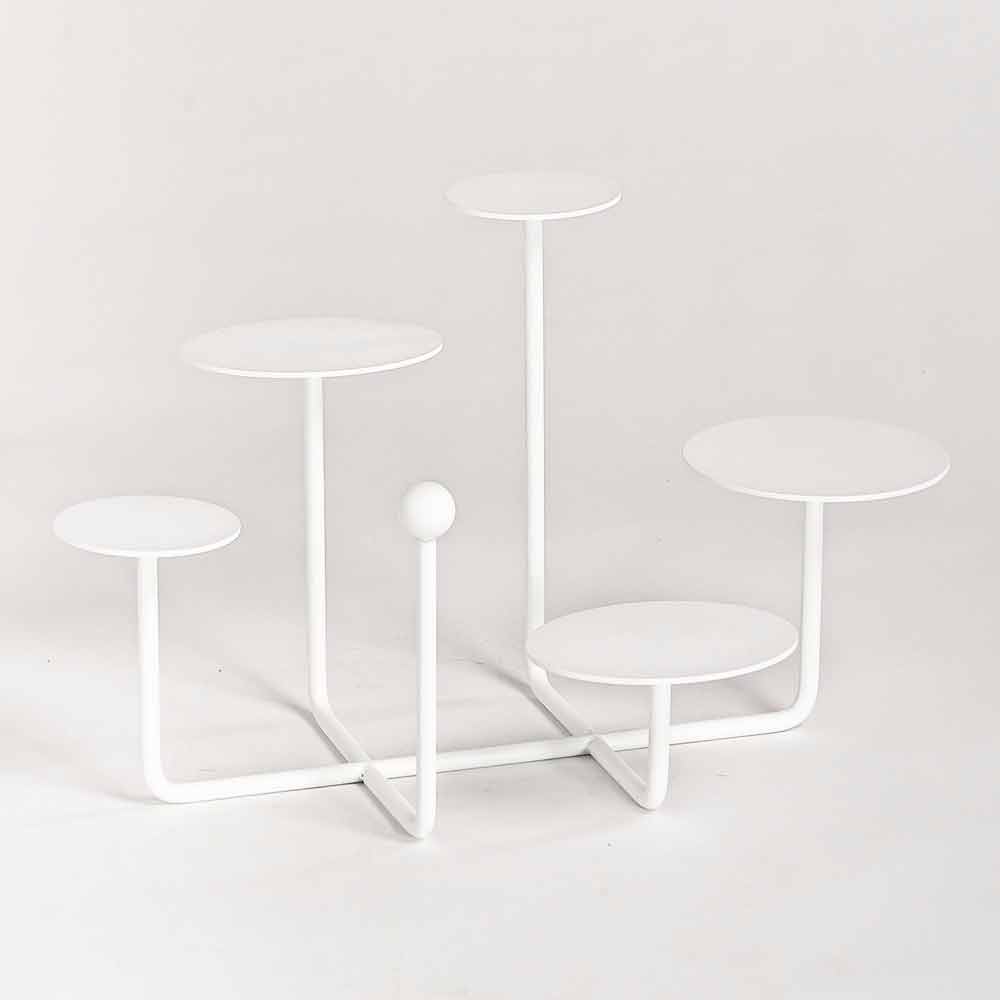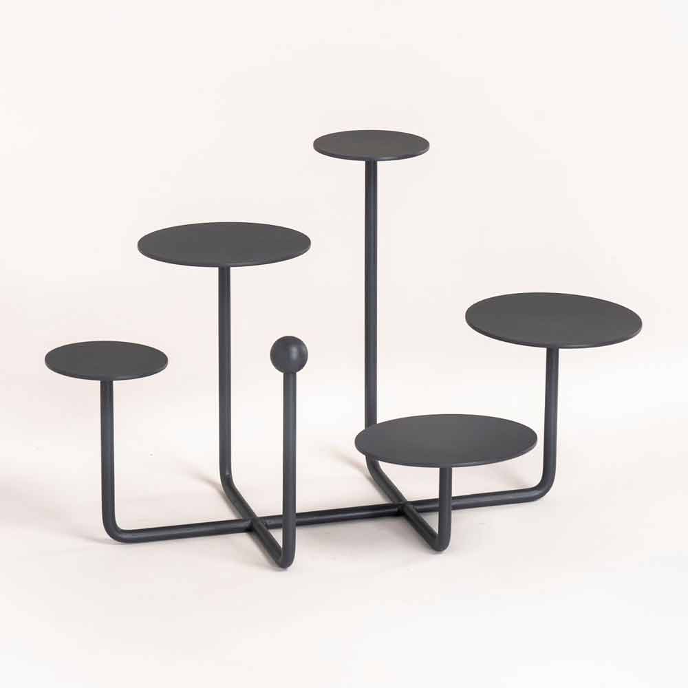 Dieser Backsplash wird vollständig in Italien aus RAL-lackiertem Stahl hergestellt , was dem Produkt ein modernes und raffiniertes Design verleiht. Seine Struktur besteht aus 5 praktischen runden Oberteilen in verschiedenen Höhen, die sich ideal für kleines Gebäck oder Fingerfood eignen. Aufgrund seiner Form und geringen Größe ist dieses Produkt ideal als echtes Designelement auf dem Tisch, das dazu beiträgt, dass jede kulinarische Kreation zu einem echten Kunstwerk wird.