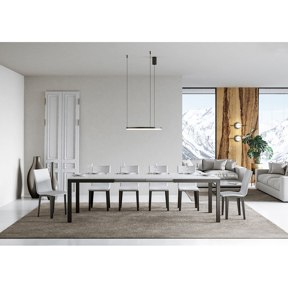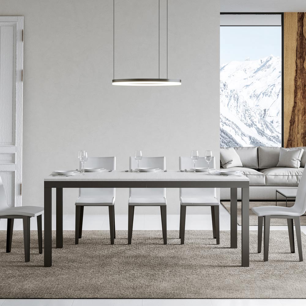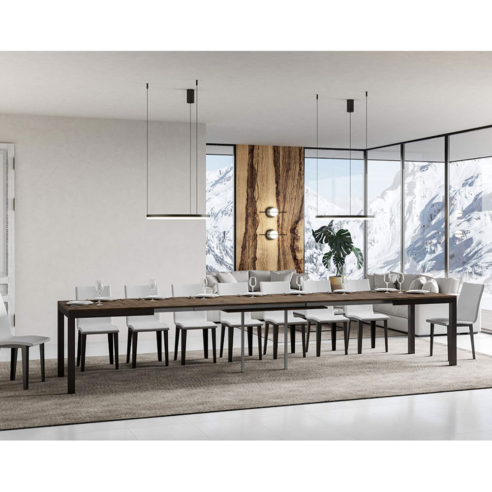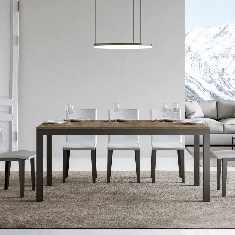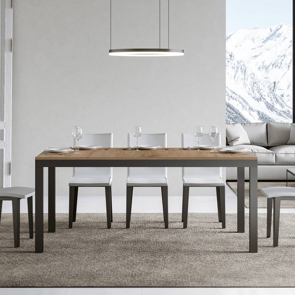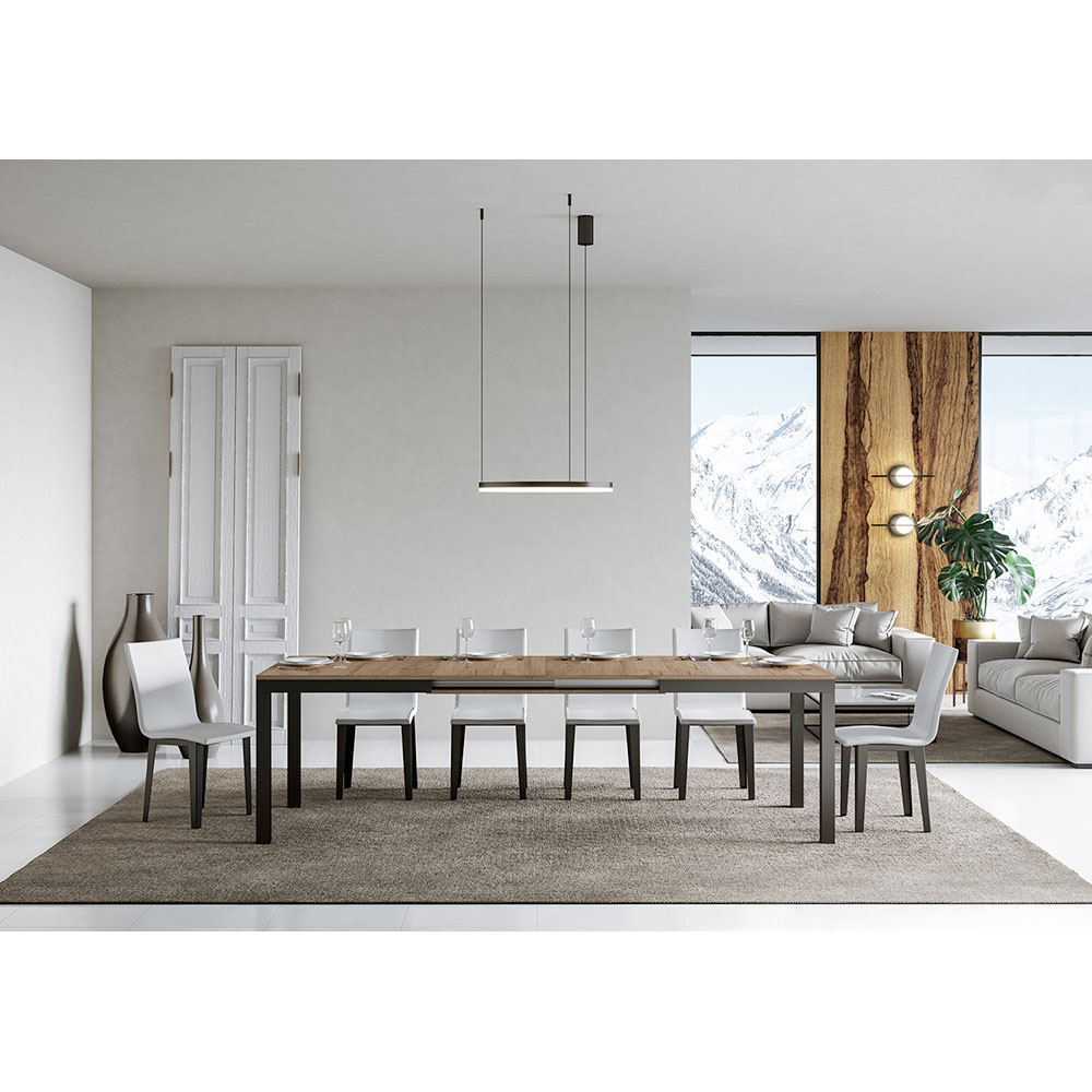 Dieser ausziehbare Tisch è eine perfekte Synthese aus zurückhaltender Eleganz und moderner Funktionalität. Die Tischplatte lädt dazu ein, sich zu versammeln, um Mahlzeiten und kostbare Momente zu teilen, und strahlt ein Gefühl von Willkommenheit und Wärme aus. Die robusten Beine sorgen für Stabilität und setzen einen zeitgemäßen Akzent.