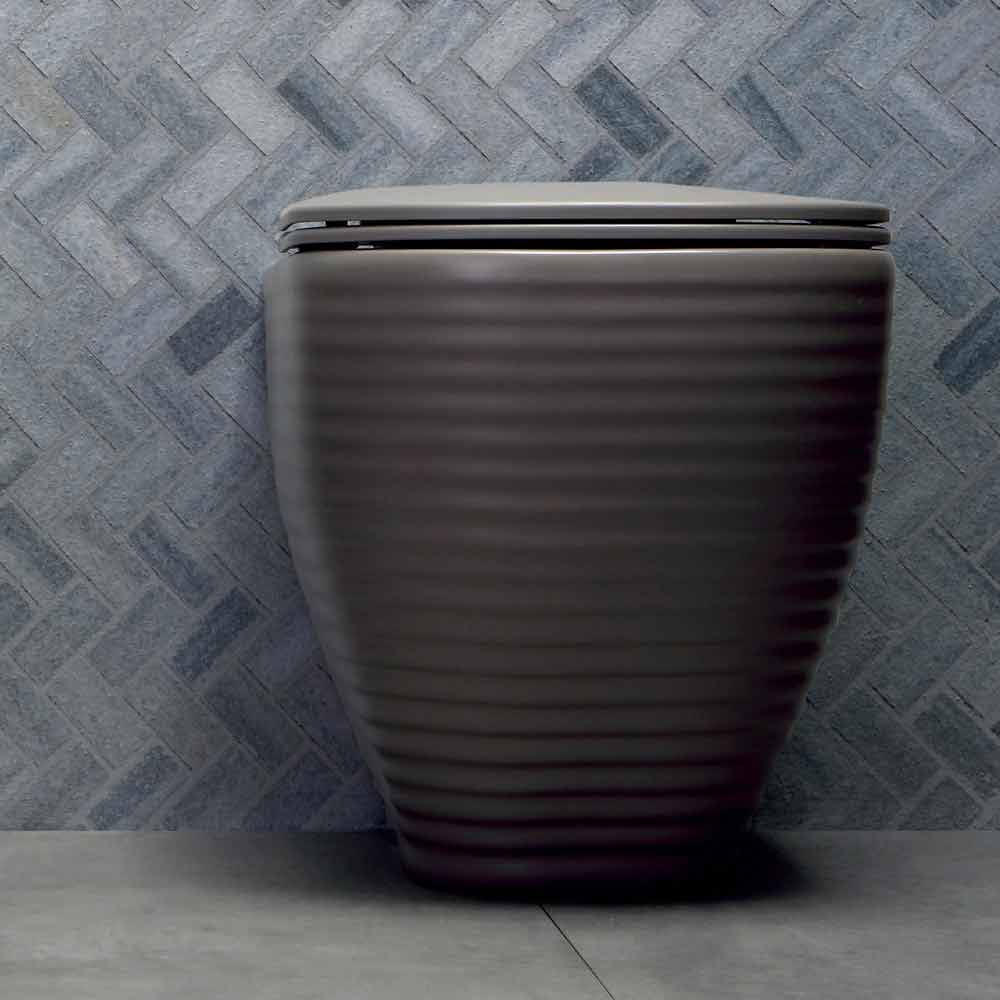 Es wird komplett mit Erdungs- oder Wandentladungsanschluss geliefert . Passen Sie Ihr Badezimmer gleichzeitig mit funktionalen und dekorativen Möbeln an. Die Toilettenvase Trabia verleiht einen Hauch von Modernität dank seines minimalen, aber raffinierten Stils , der sich durch horizontale Rillen auszeichnet. Es ist in verschiedenen Farben und in glänzender oder matter Ausführung erhältlich.
