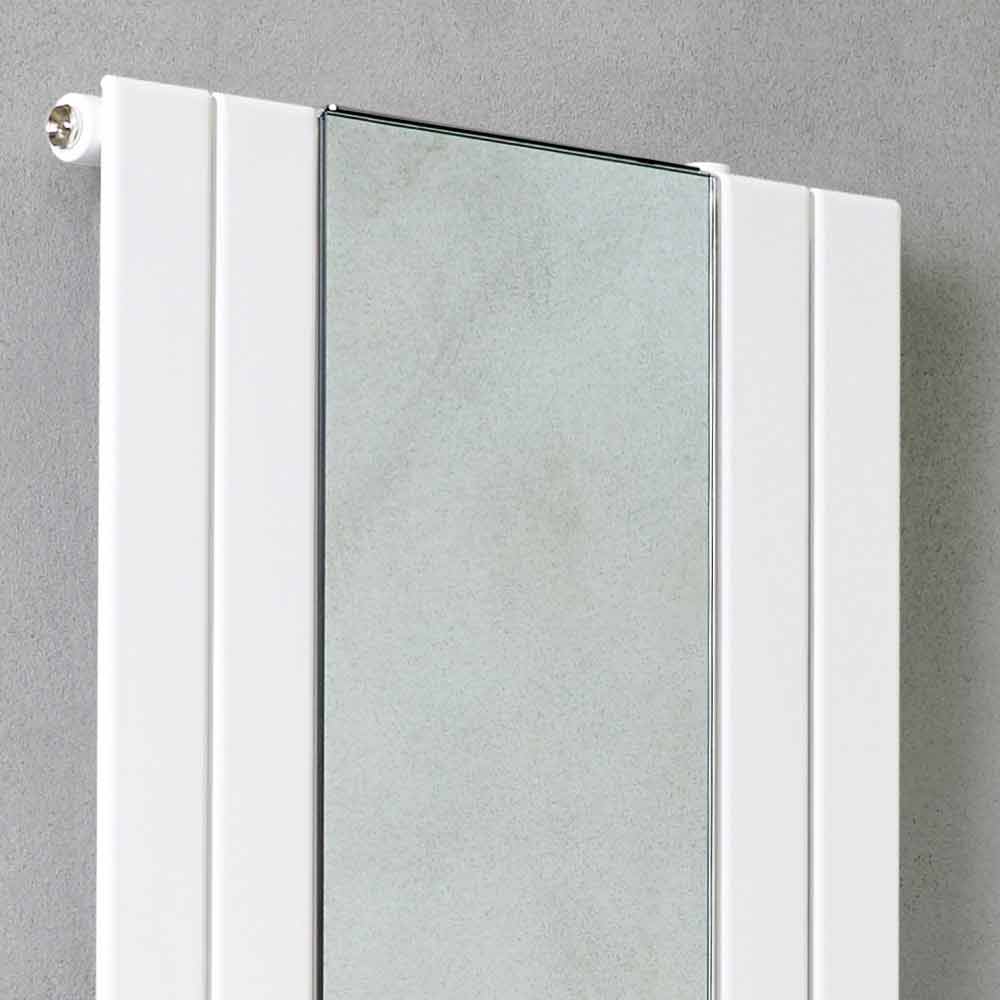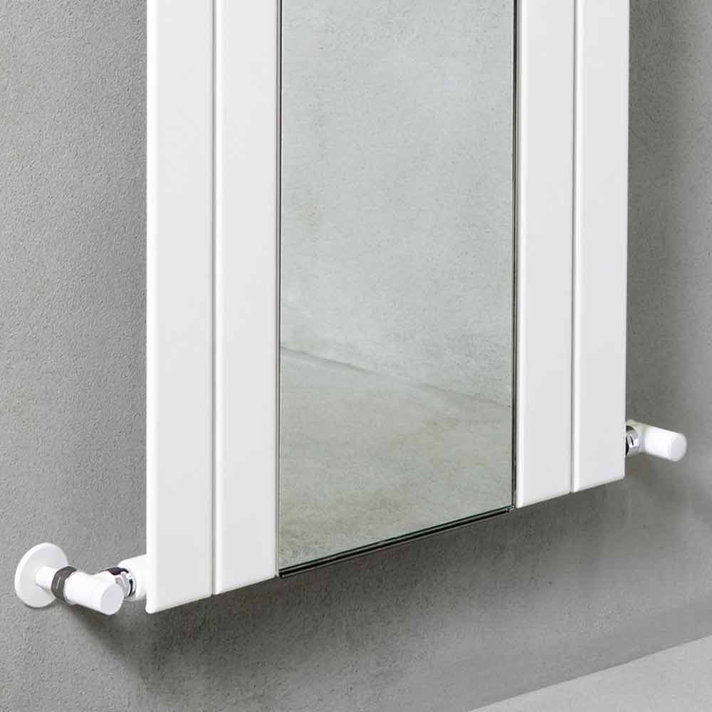 Dieser Kühler verfügt über ein Design, das aus vertikalen Flachrohren mit einer Größe von 70 x 11 mm und Verteilern mit einem Durchmesser von 35 mm besteht. Der eigentliche Protagonist der Ergänzung ist der zentrale Spiegel, der eine elegante Atmosphäre schafft, die die Umgebung vervollständigt.