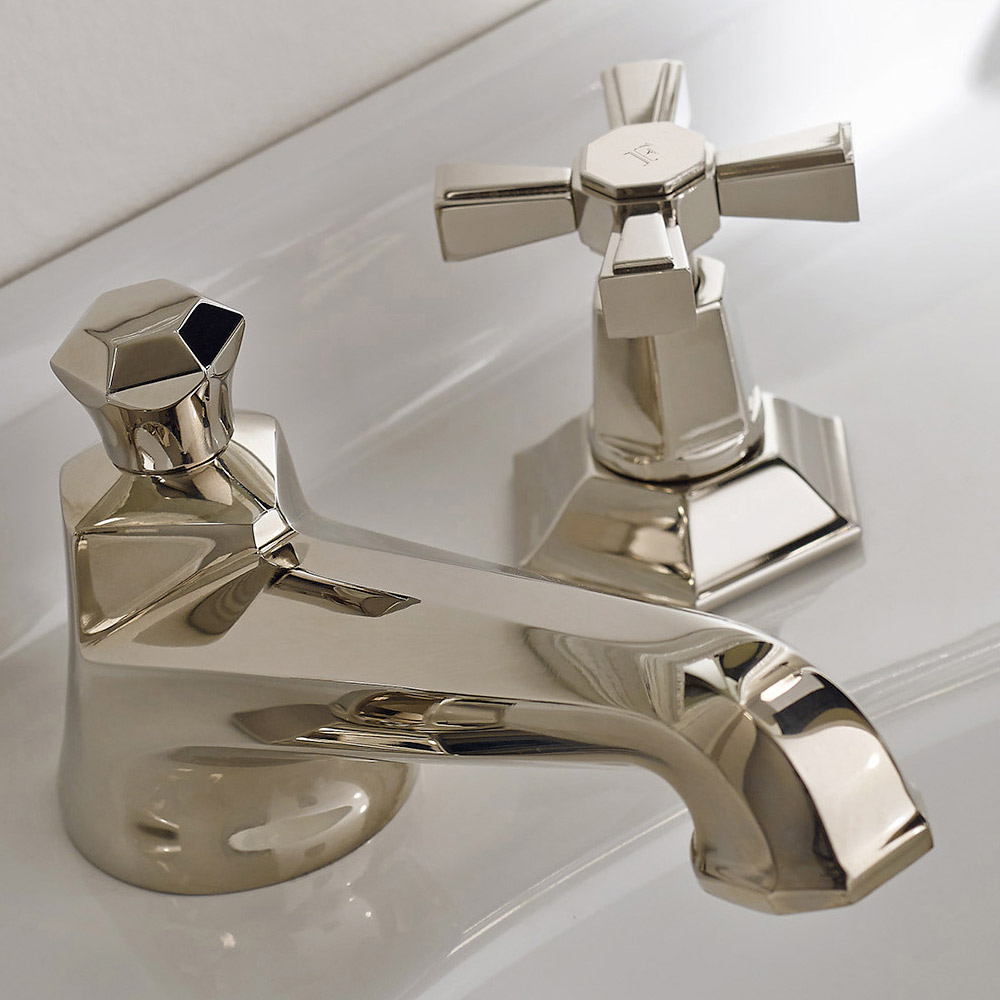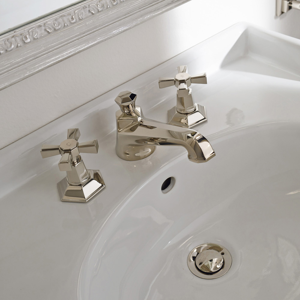 Die Kollektion Silvana è zeichnet sich durch sechseckige Formen und Oberflächen aus, deren Facetten das Licht auf originelle Weise reflektieren und die Umgebung beleuchten. Der Stil ist eindeutig von der Kunst des Déco inspiriert. Diese Linie von Luxus-Badarmaturenè wurde entwickelt, um mit Badewannen, Waschbecken, Duschen und Bidets im Vintage-Stil kombiniert zu werden.